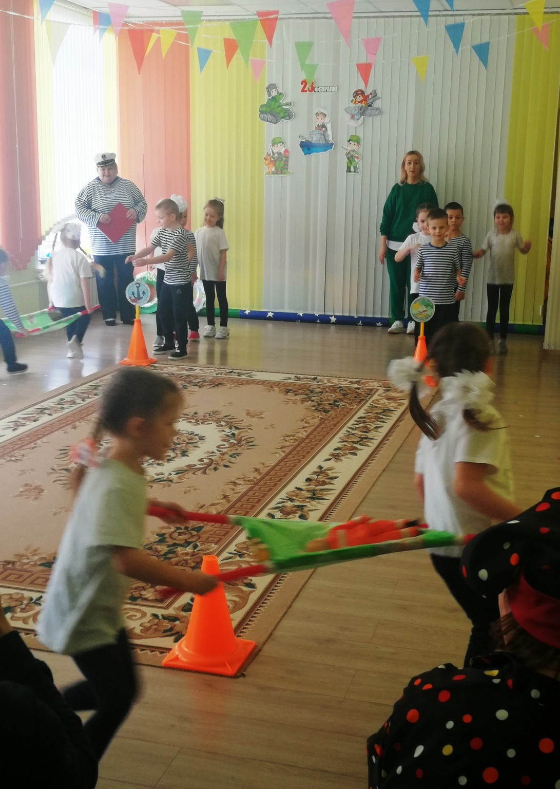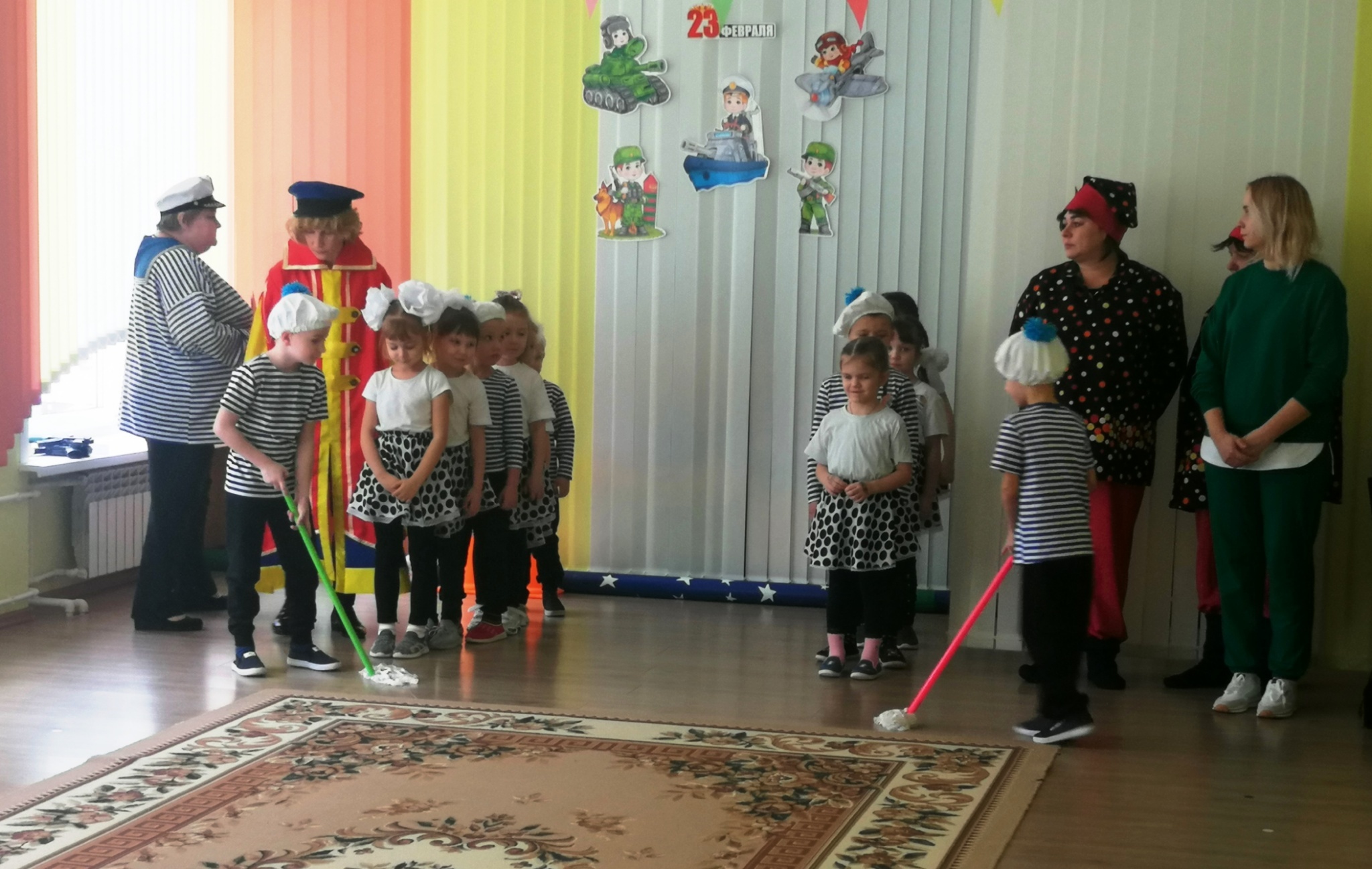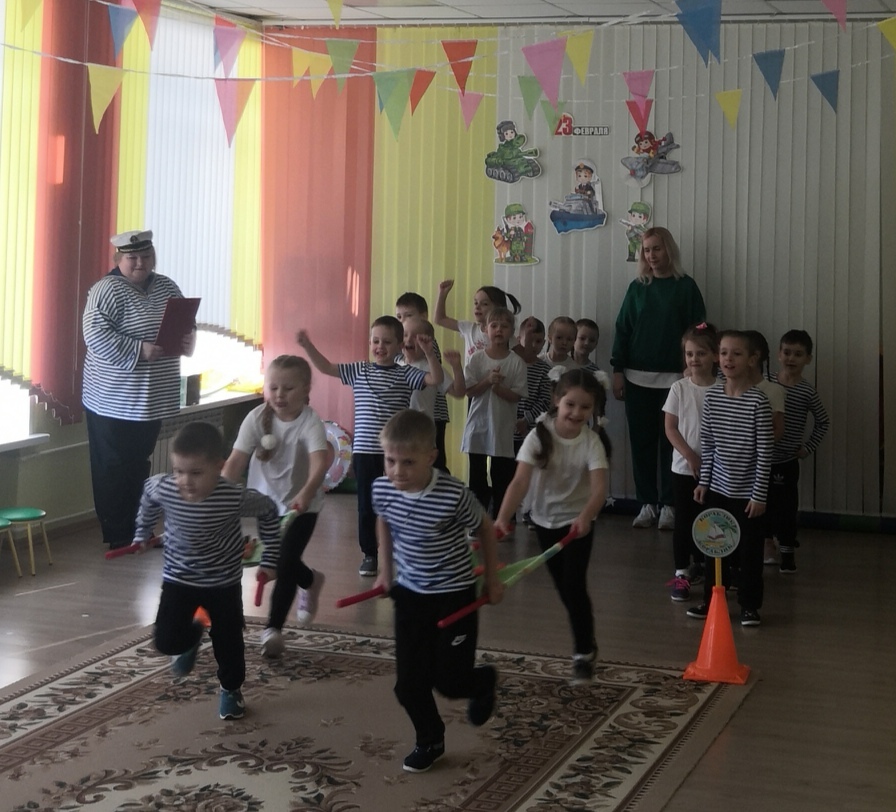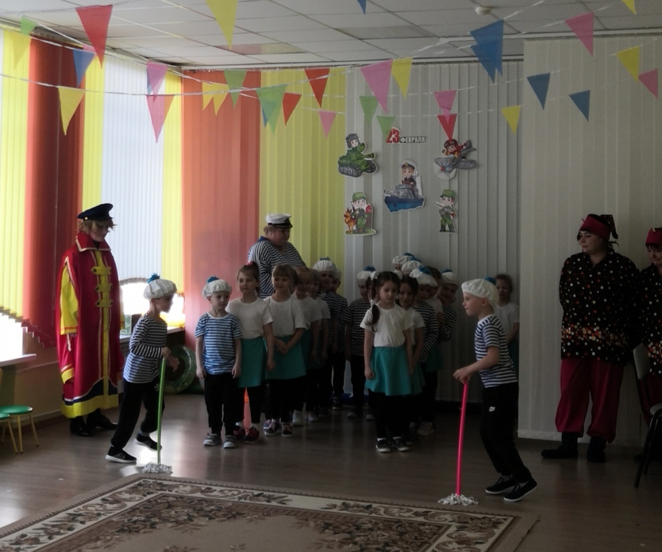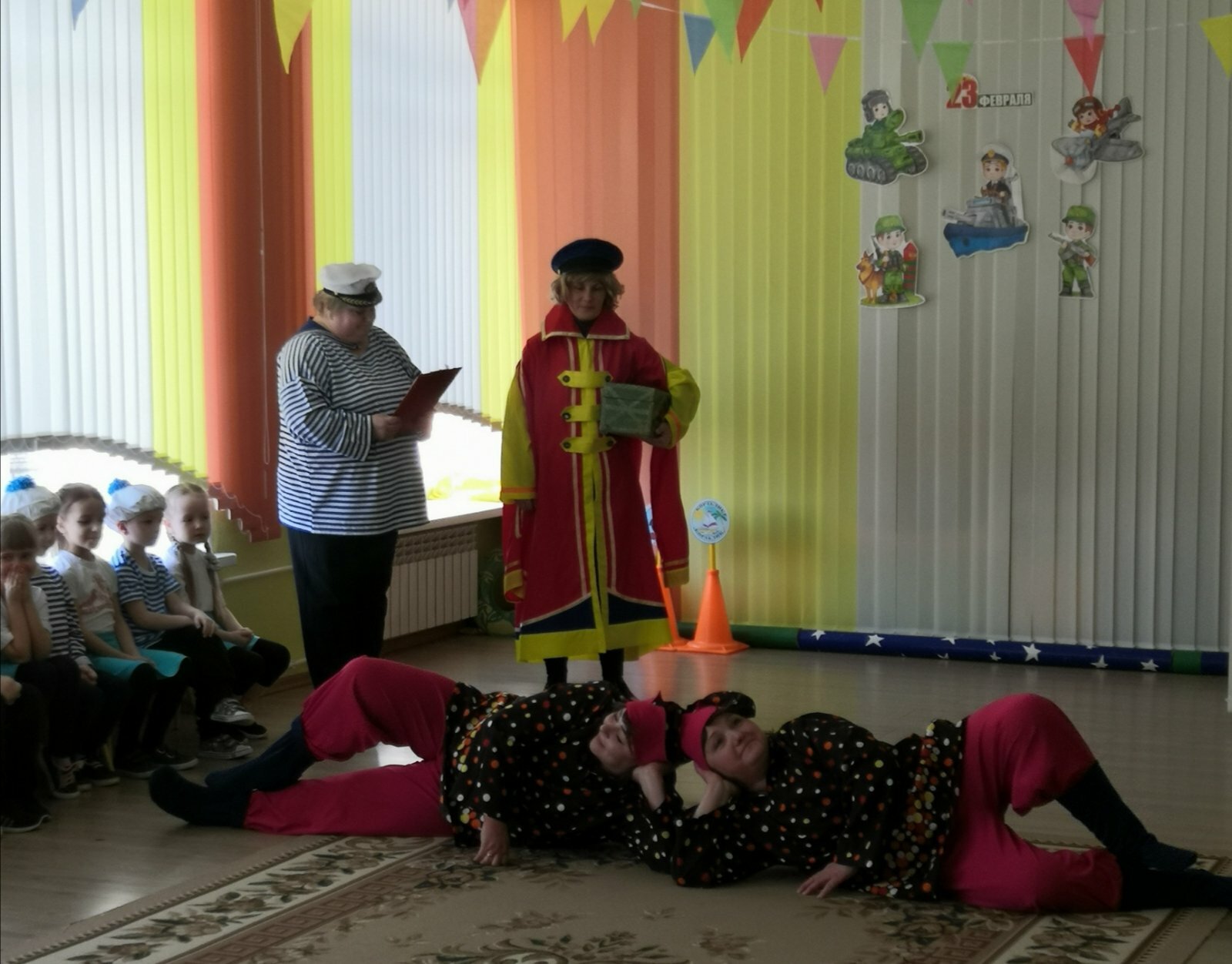 "Праздник прошёл на ура!" - с такими словами уходили родители с музыкально-спортивных праздников, прошедших в нашем детском саду 22 и 23 февраля, посвященных Дню защитников Отечества. Ребята вместе с Вовкой из тридевятого царства и его помощниками - "Двое из ларца"- демонстрировали умение маршировать,познакомились с разными родами войск и порадовали всех танцем "На палубе матросы", который никого не оставил равнодушным. Затем две команды ребят вместе со своими папами продемонстрировали всю свою ловкость, силу и сноровку в весёлых эстафетах "Ловкий пограничник", "Связисты", "Папы-десантники", "Спасательный круг" и других. В результате жюри объявило дружескую ничью.