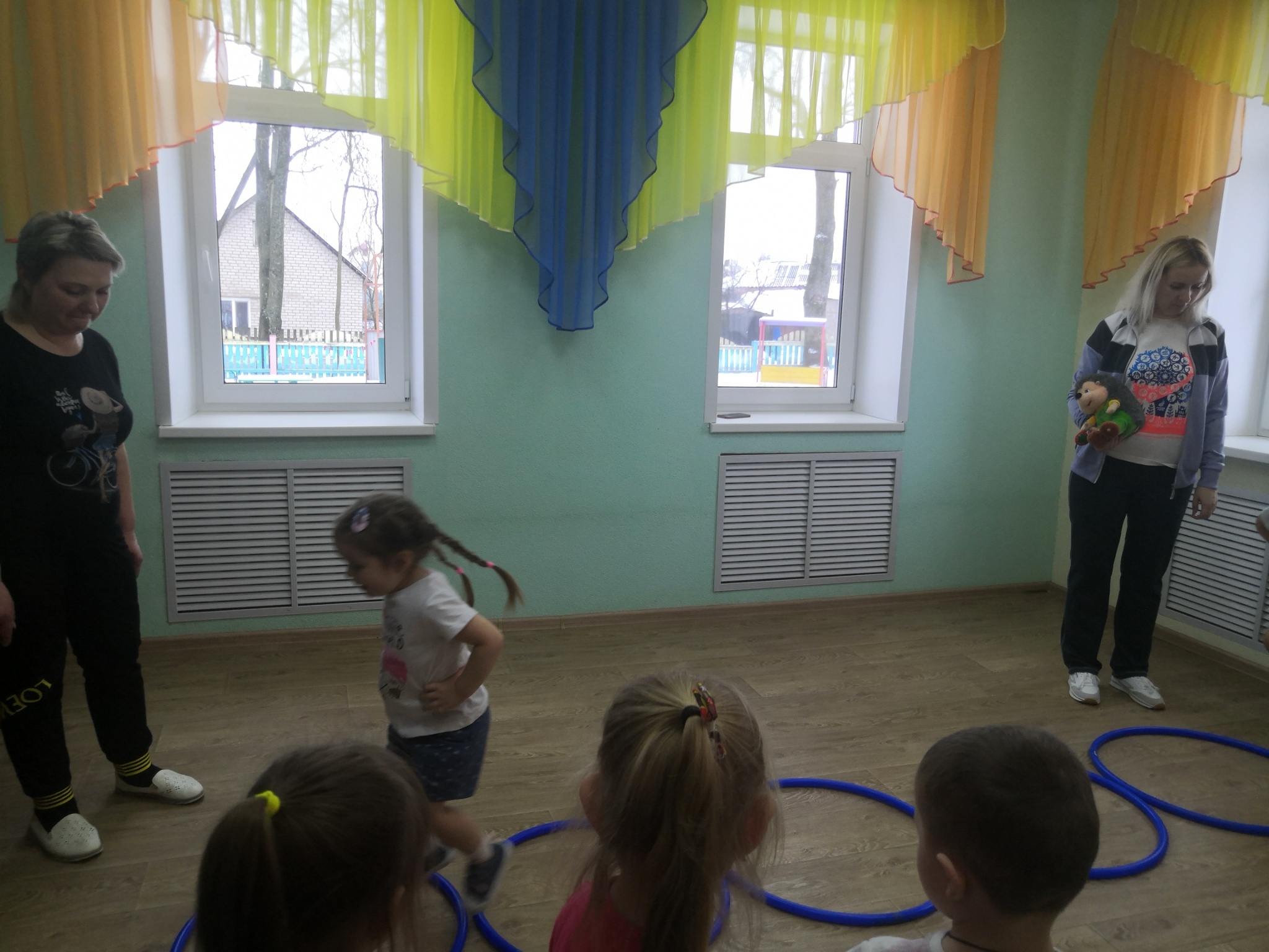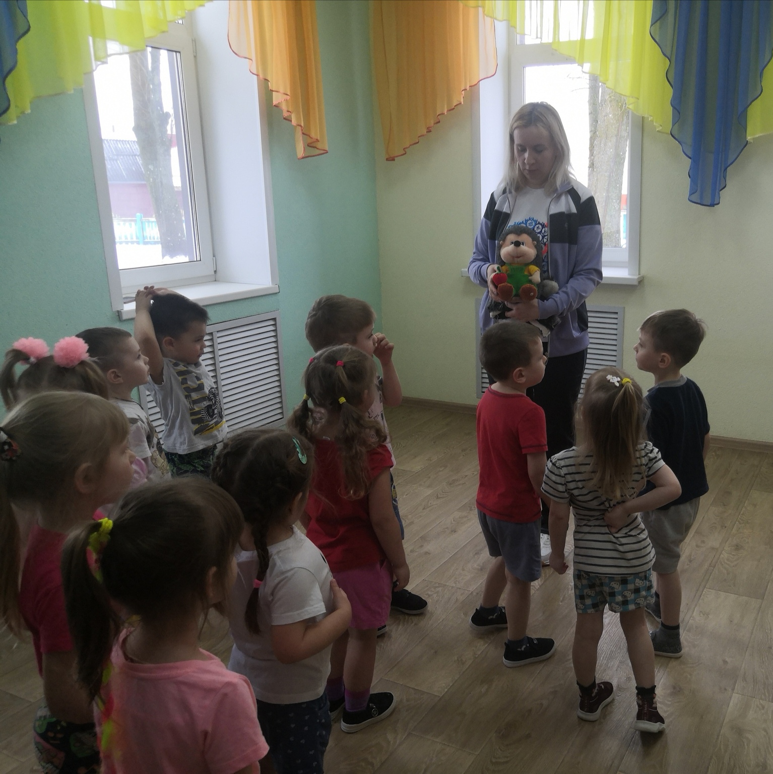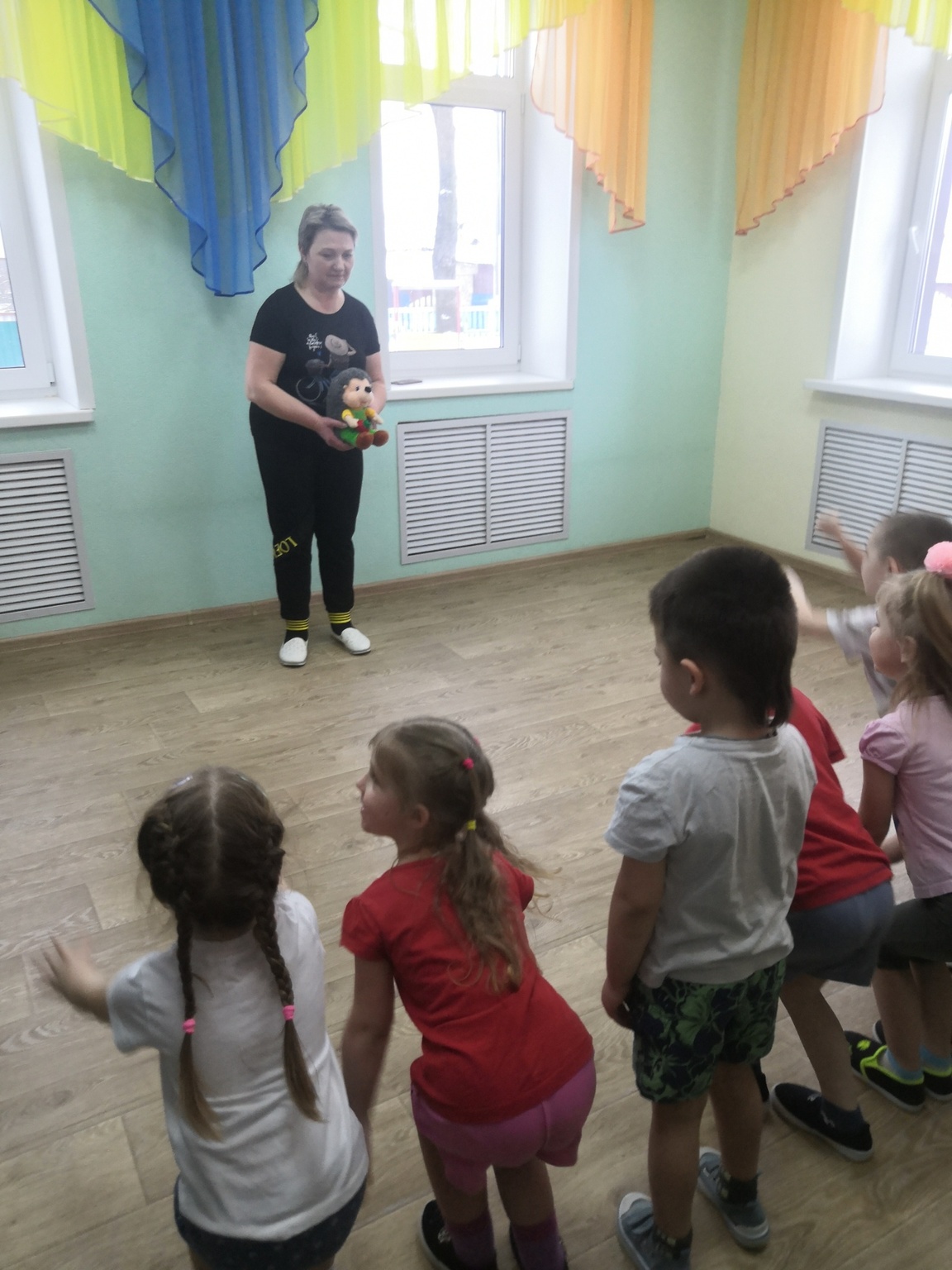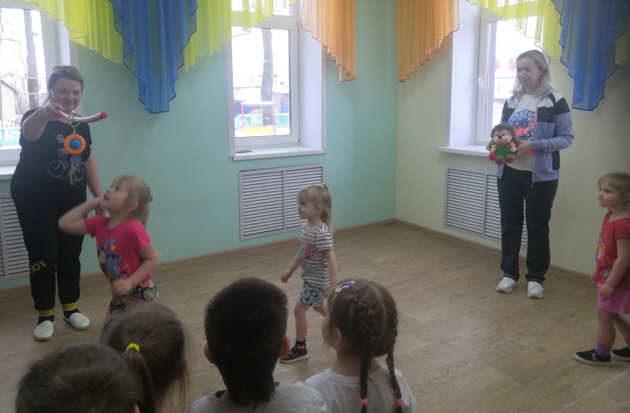 За это время были организованы открытые просмотры музыкального праздника для воспитанников старших групп «День Конституции», физкультурного досуга во второй младшей группе «Про ежонка Крошку», познавательной практической деятельности во второй младшей группе «Воздух – невидимка».