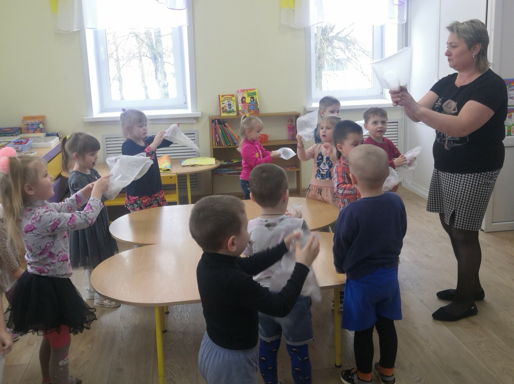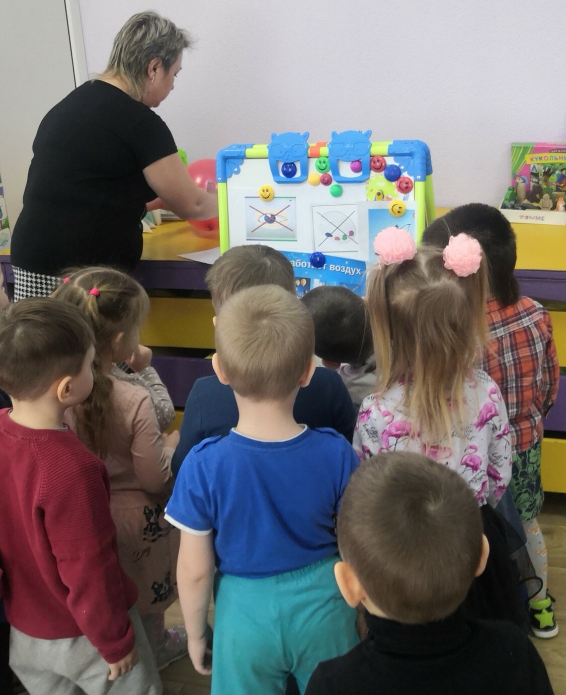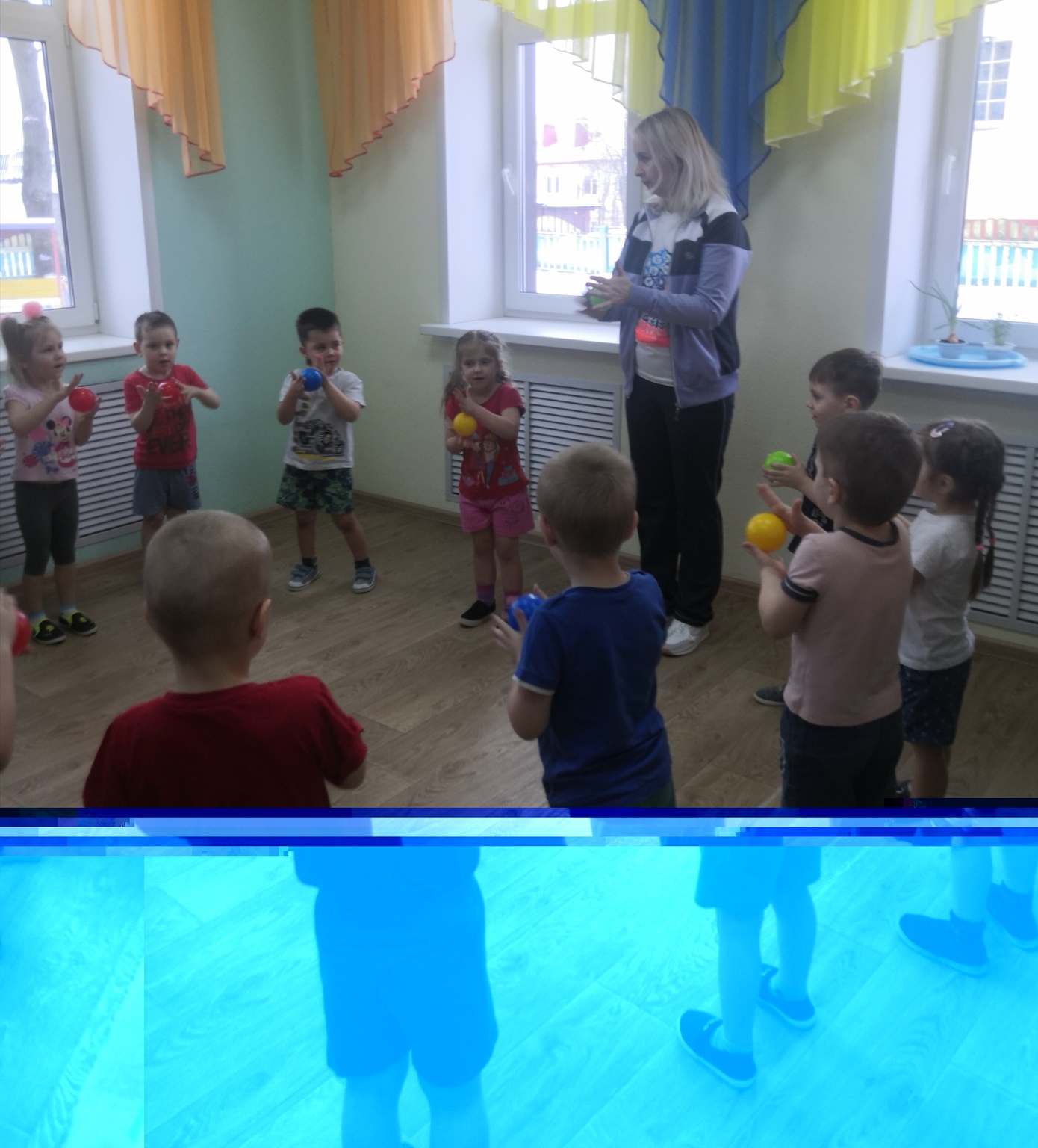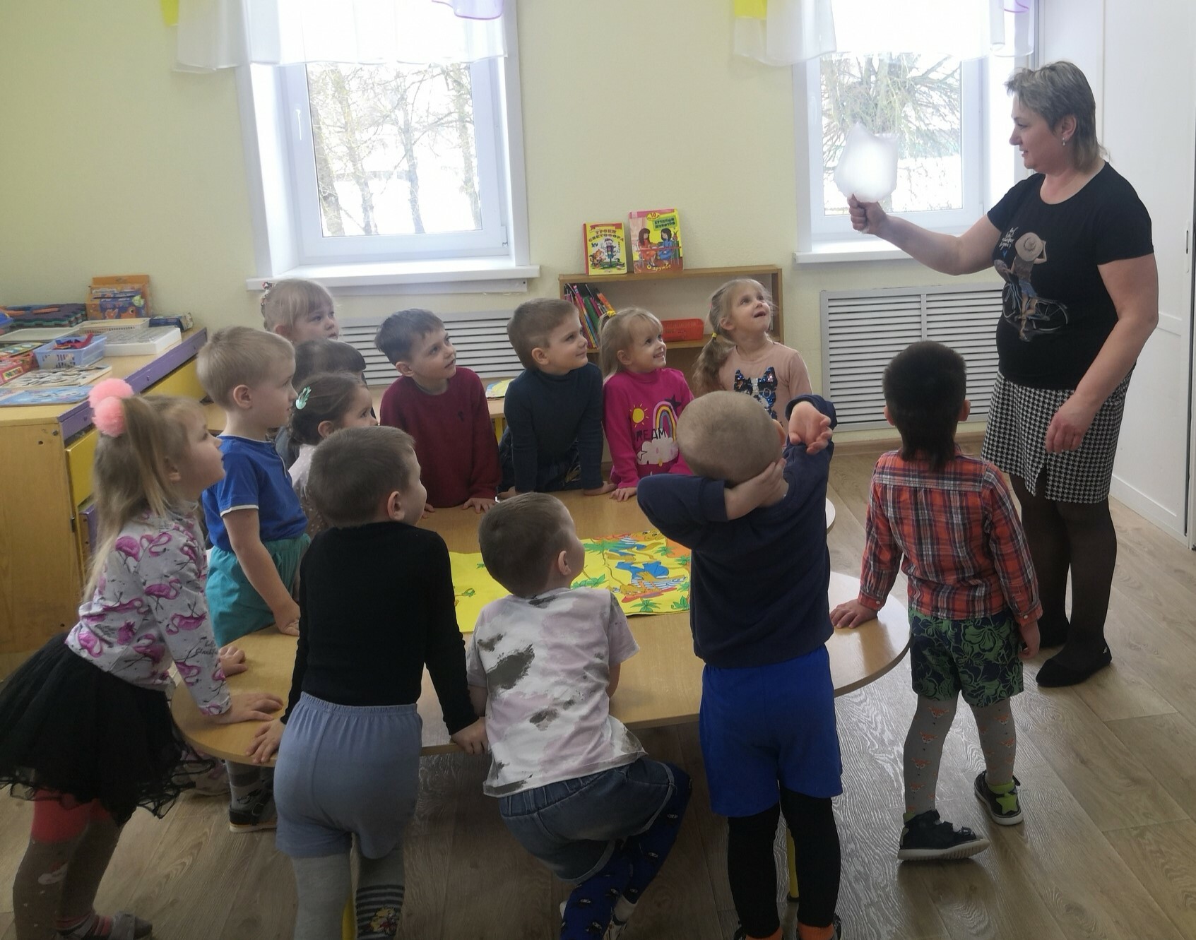 За это время были организованы открытые просмотры музыкального праздника для воспитанников старших групп «День Конституции», физкультурного досуга во второй младшей группе «Про ежонка Крошку», познавательной практической деятельности во второй младшей группе «Воздух – невидимка».