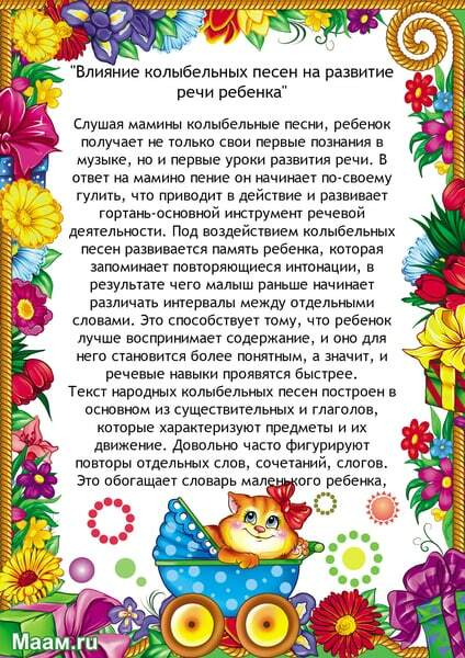 Советы музыкального руководителя -" Влияние колыбельных песен на развитие речи ребёнка"