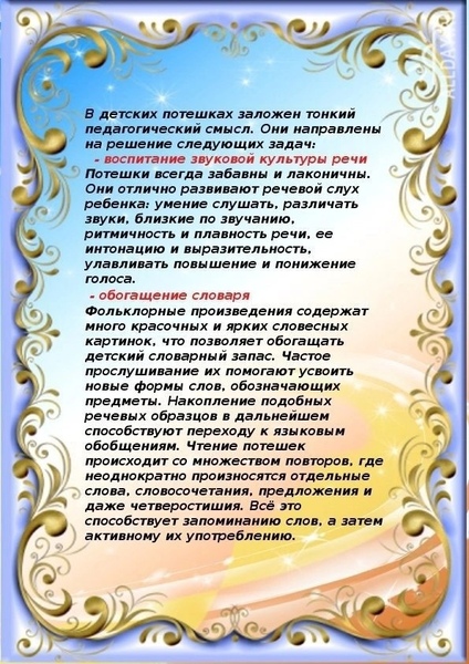 Роль потешек в ревом развитии младших дошкольников