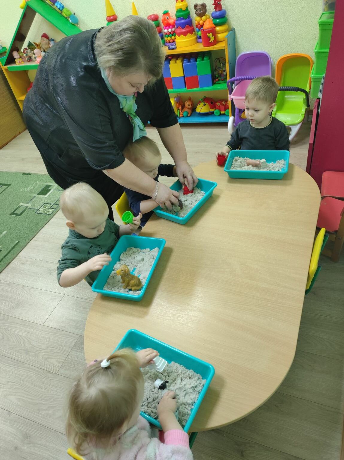 - воспитатель дошкольного образования при проведении специально организованной деятельности по образовательной области «Ребёнок и природа» использовала кинетический песок , как нетрадиционную форму проведения игры-занятия с детьми второго раннего возраста.