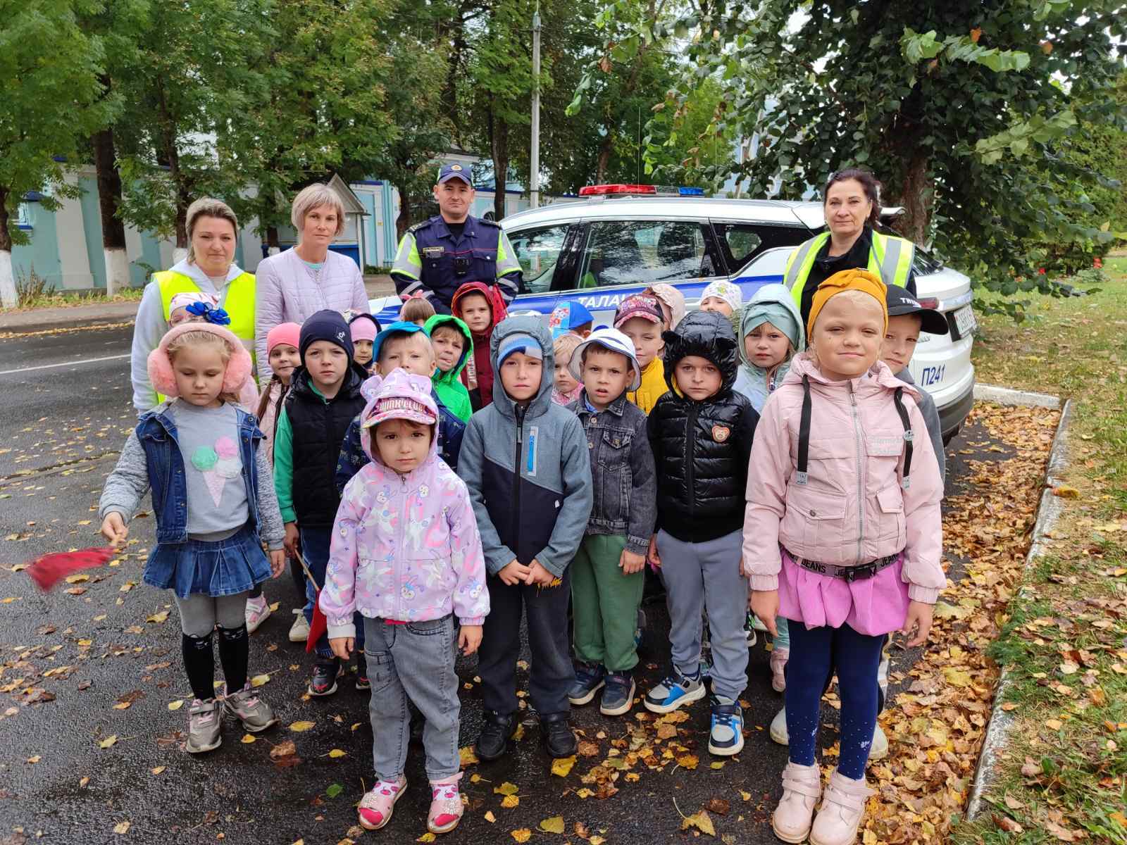 Воспитанники старших групп совершили пешеходную экскурсию, где вспомнили правила дорожной безопасности,а инспектор ГАИ провел с ребятами познавательно-профилактическую беседу .