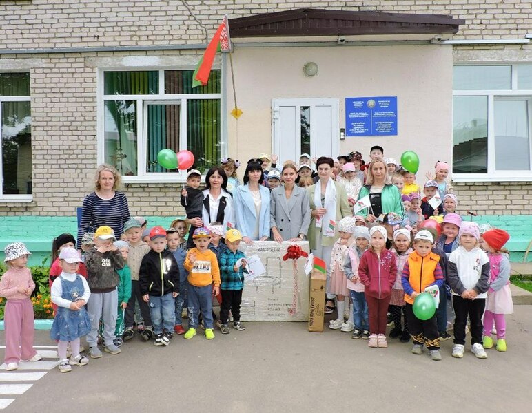 Вручили спортивно-игровое оборудование председатель районной организации Алла Михайловна Кравченко, бухгалтер Наталья Михайловна Гамезо, методист районного учебно-методического кабинета Юлия Михайловна Костюкевич.