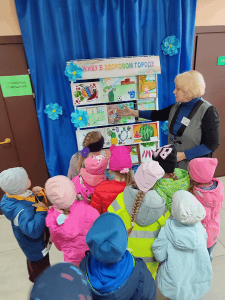 Встретила ребят директор библиотеки, которая рассказала о своей профессии, о профессии библиотекаря, познакомила ребят с выставкой "Живут в здоровом городе", рассказала о том как можно стать посетителем библиотеки.