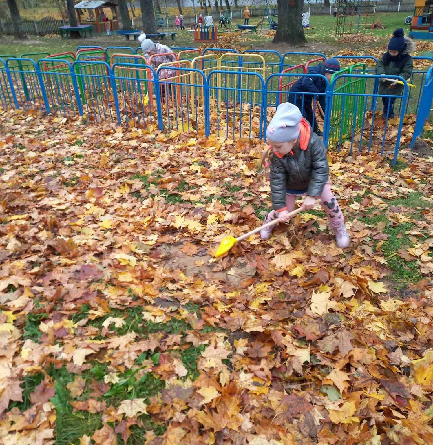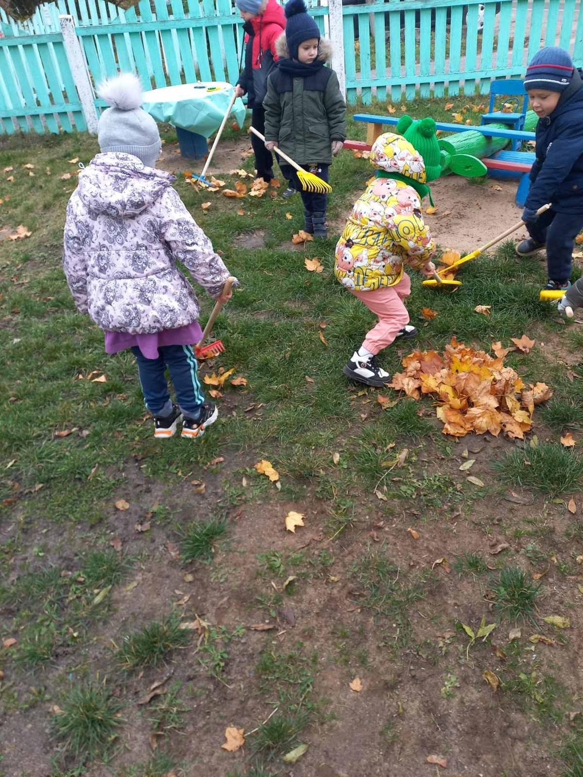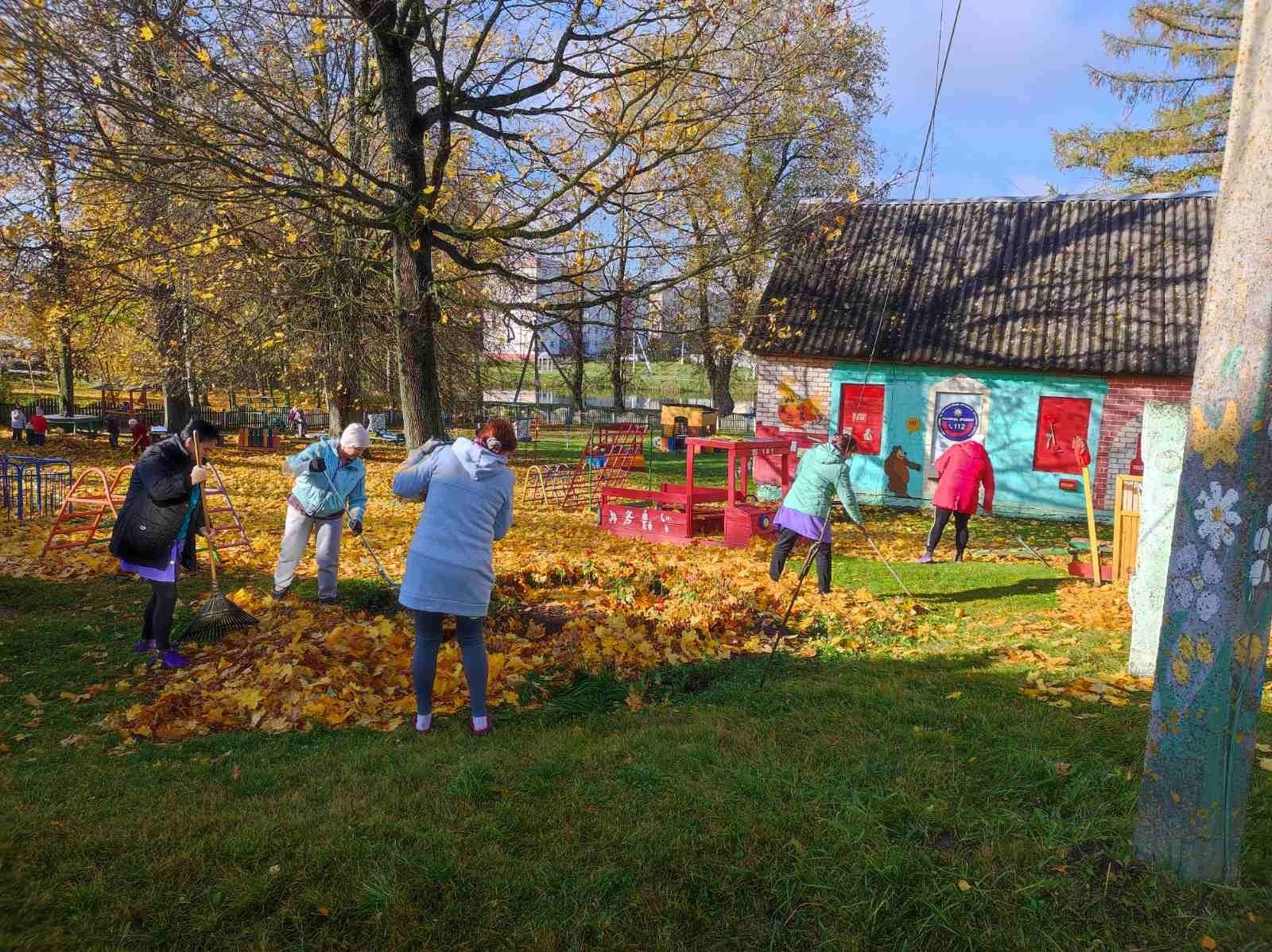 С хорошим задором, весело и дружно все вместе очистили прогулочные площадки от опавшей листвы, привели в порядок прилегающую территорию.