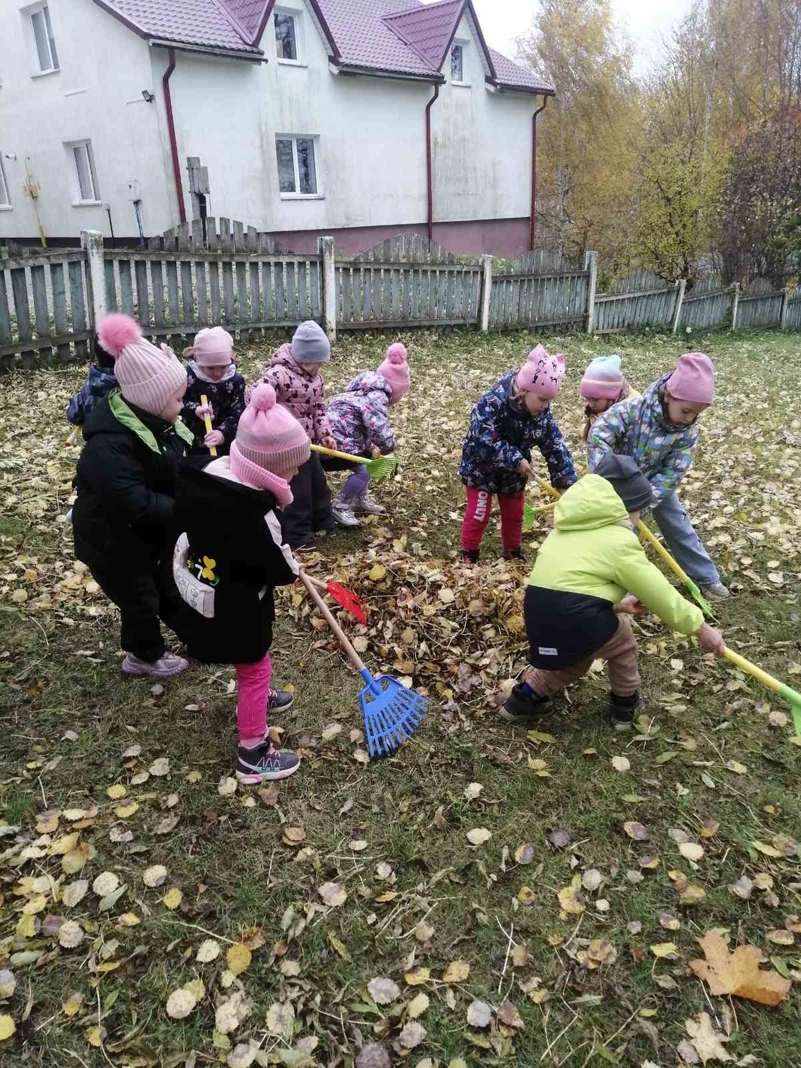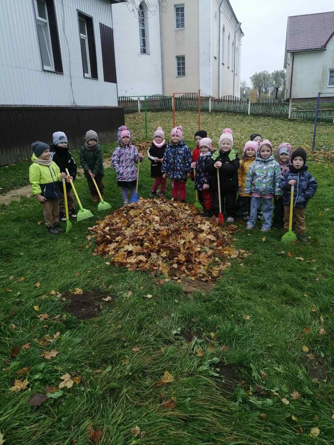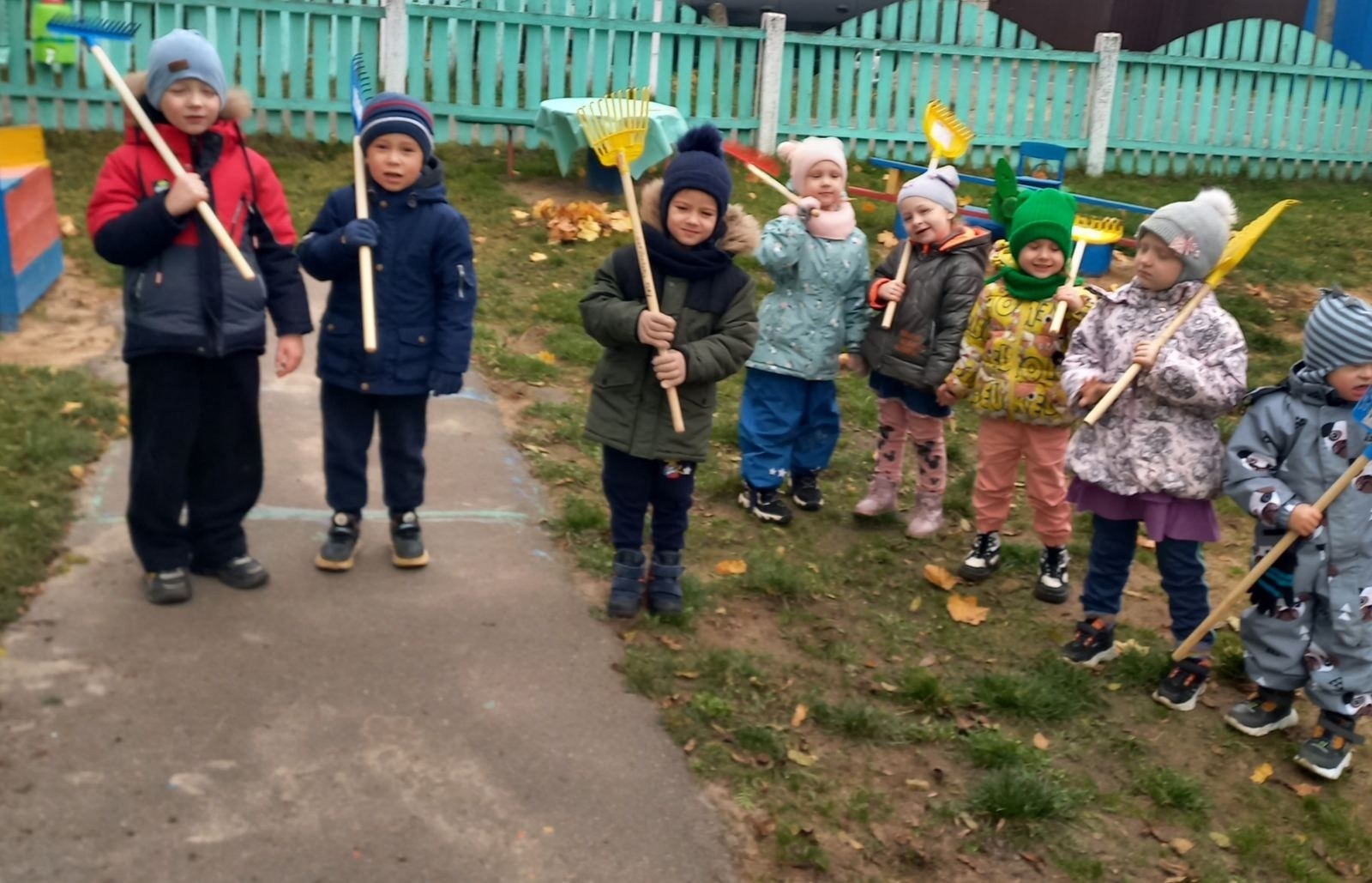 С хорошим задором, весело и дружно все вместе очистили прогулочные площадки от опавшей листвы, привели в порядок прилегающую территорию.