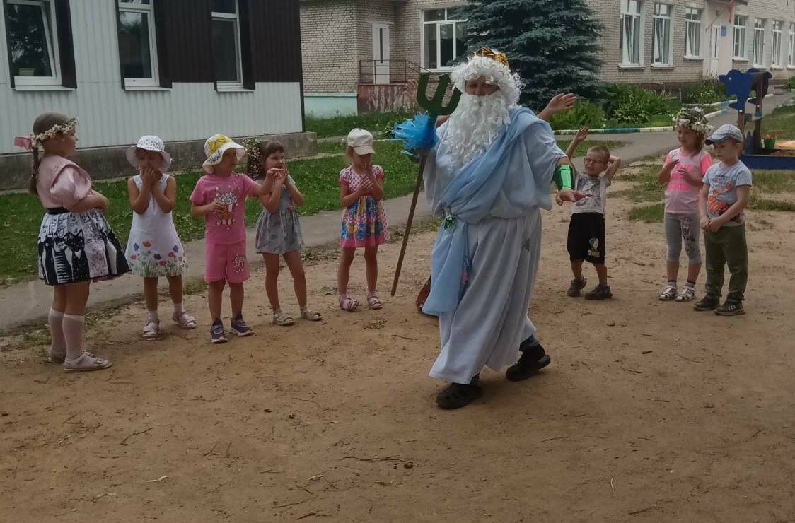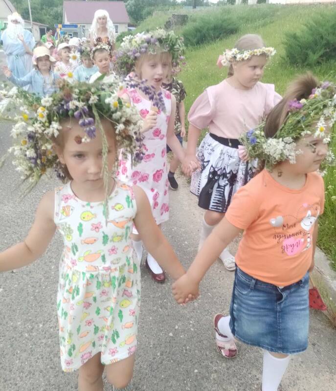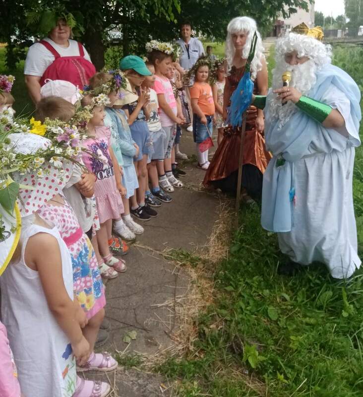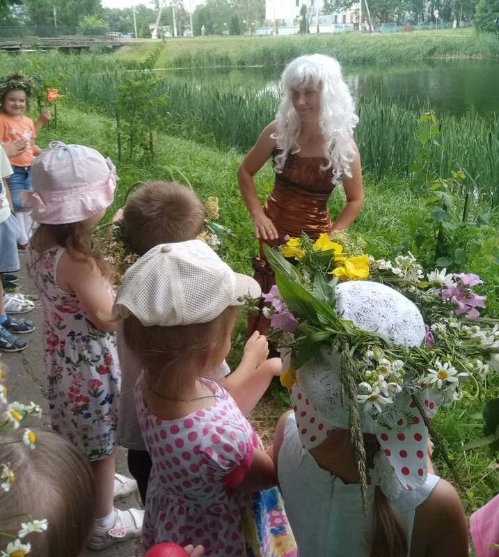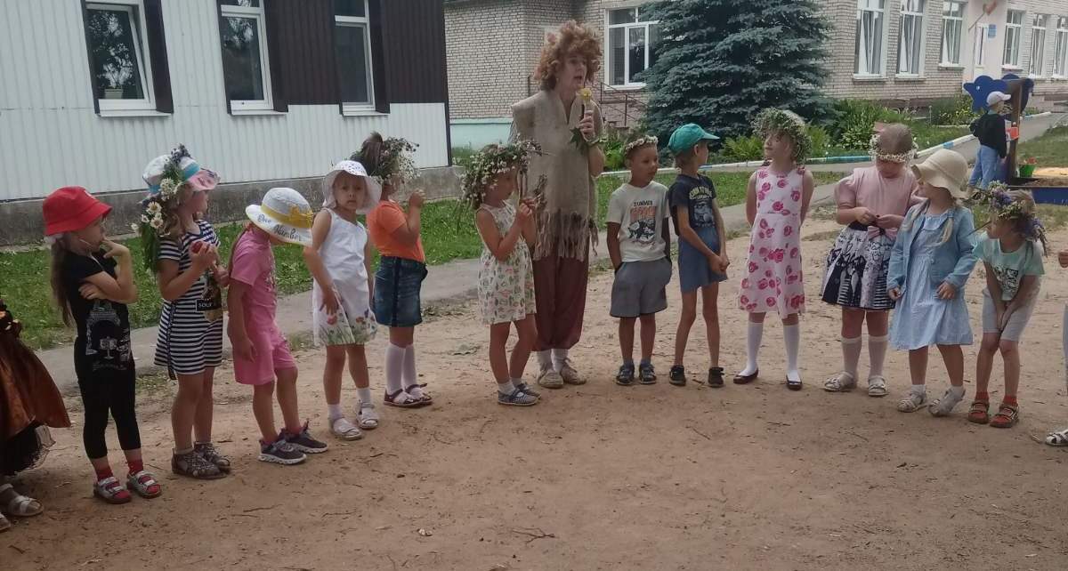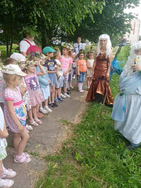 С целью приобщения детей к народной культуре сегодня, 6 июля, в нашем учреждении прошёл праздник "Ивана Купала", который начался с фееричного шествия в купальских венках к реке Друть, где их встречал морской царь Нептун со своей помощницей Русалкой. Они вместе с детьми опускали венки в воду, которые красиво поплыли по реке, чем вызвали у детей огромный восторг.