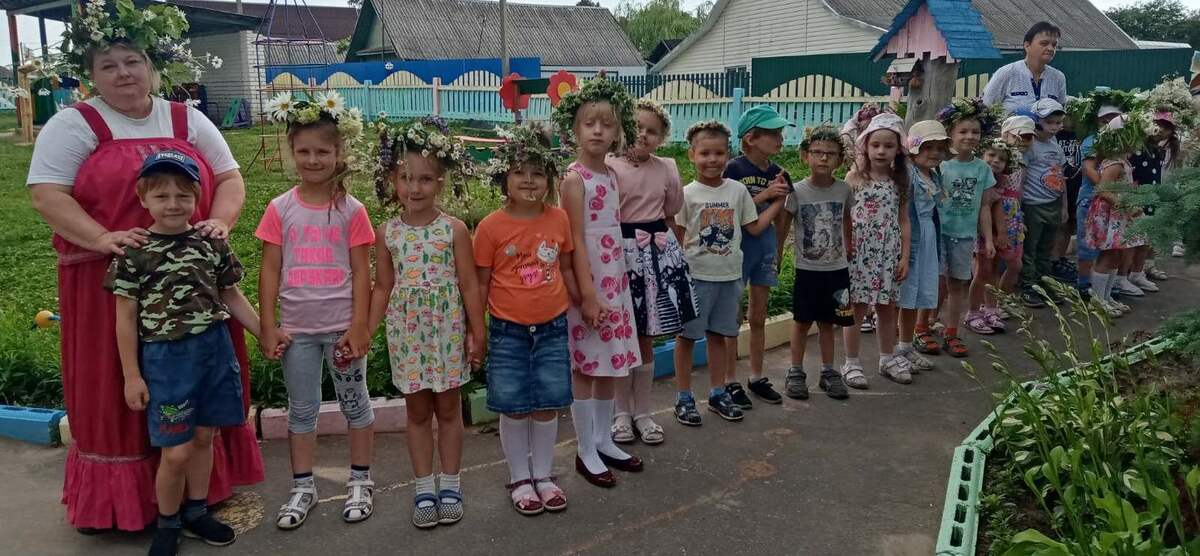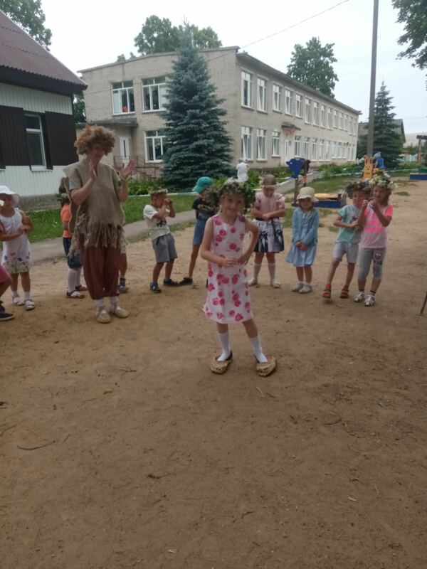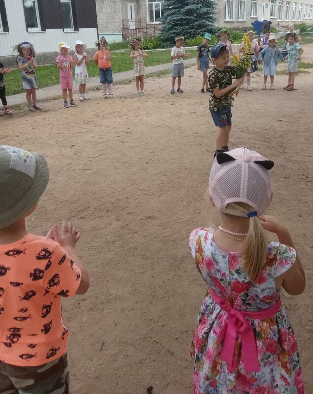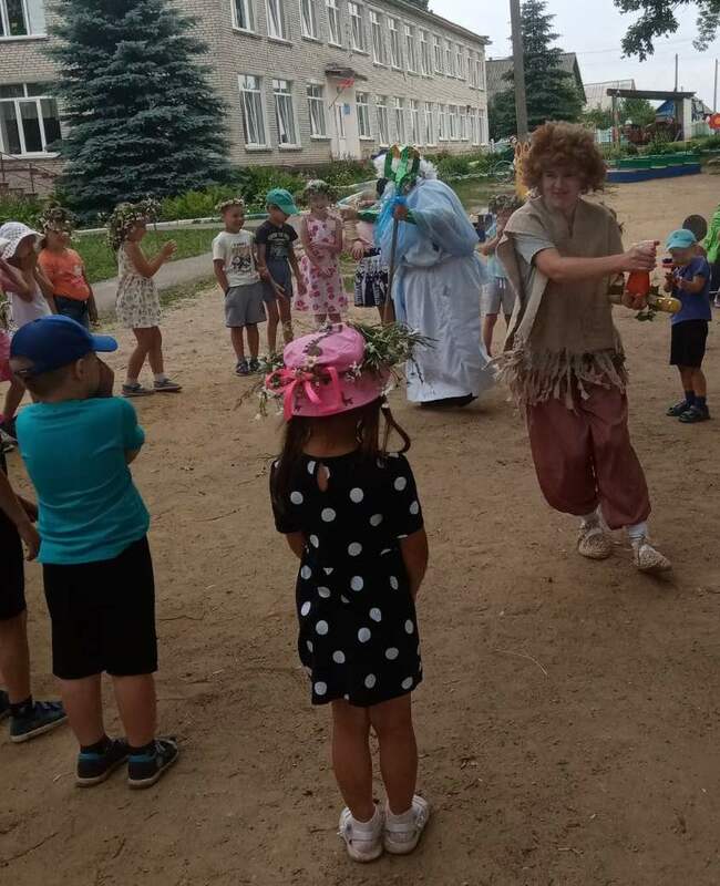 Далее праздник продолжился на территории детского сада: дети водили хороводы, играли в белорусские народные игры "Лапці" и "Міхасік". Сюрпризным моментом стал вредный Леший, который всячески старался запутать детей во время проведения таких игр, как "Ручеек" и "Папараць-кветка".