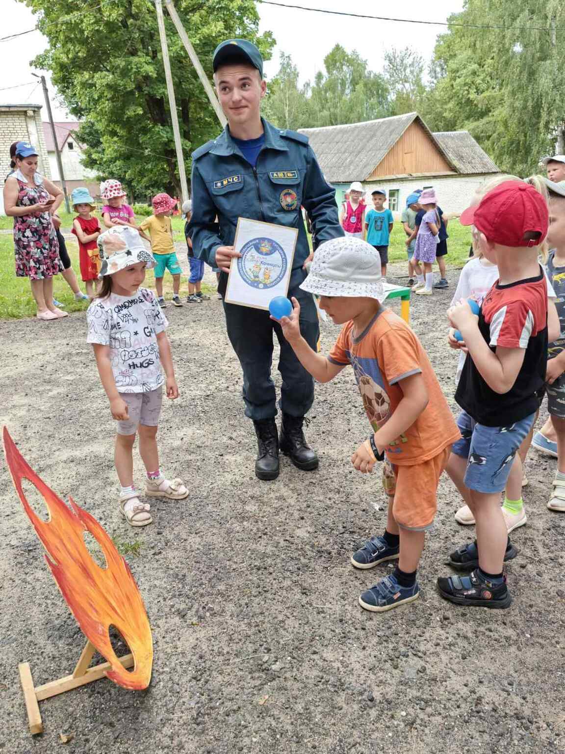 Сотрудники РОЧС провели с детьми игры, напомнили им о правилах пожарной безопансности летом. А ещё ребята смогли посидеть в пожарной машине.
