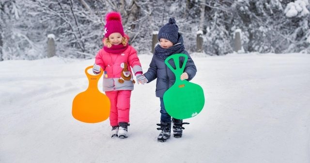 Малышей лучше катать с маленьких пологих снежных горок в немноголюдных местах, где нет деревьев, заборов и других препятствий. Перед катанием лучше всего надеть на ребенка налокотники, наколенники и шлем.
