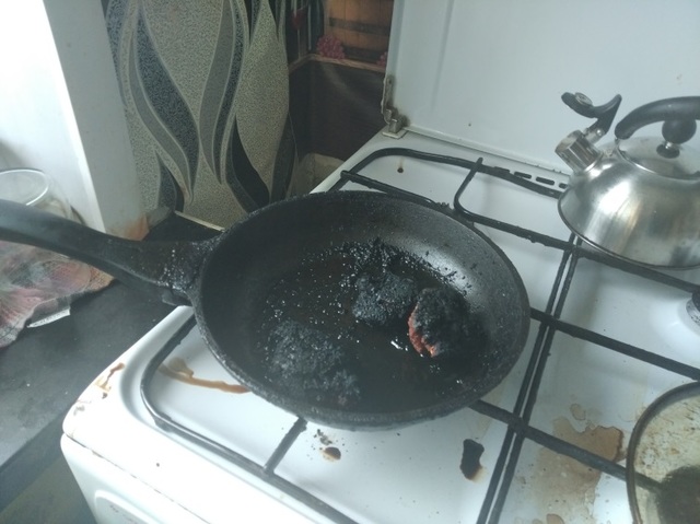 Хозяин квартиры поставила на плиту сковороду с пищей, и вышел на улицу по делам. Вернувшись на кухню, он почувствовал запах дыма и отключил плиту. К этому времени соседи уже сообщили в службу МЧС. К счастью, никто не пострадал.