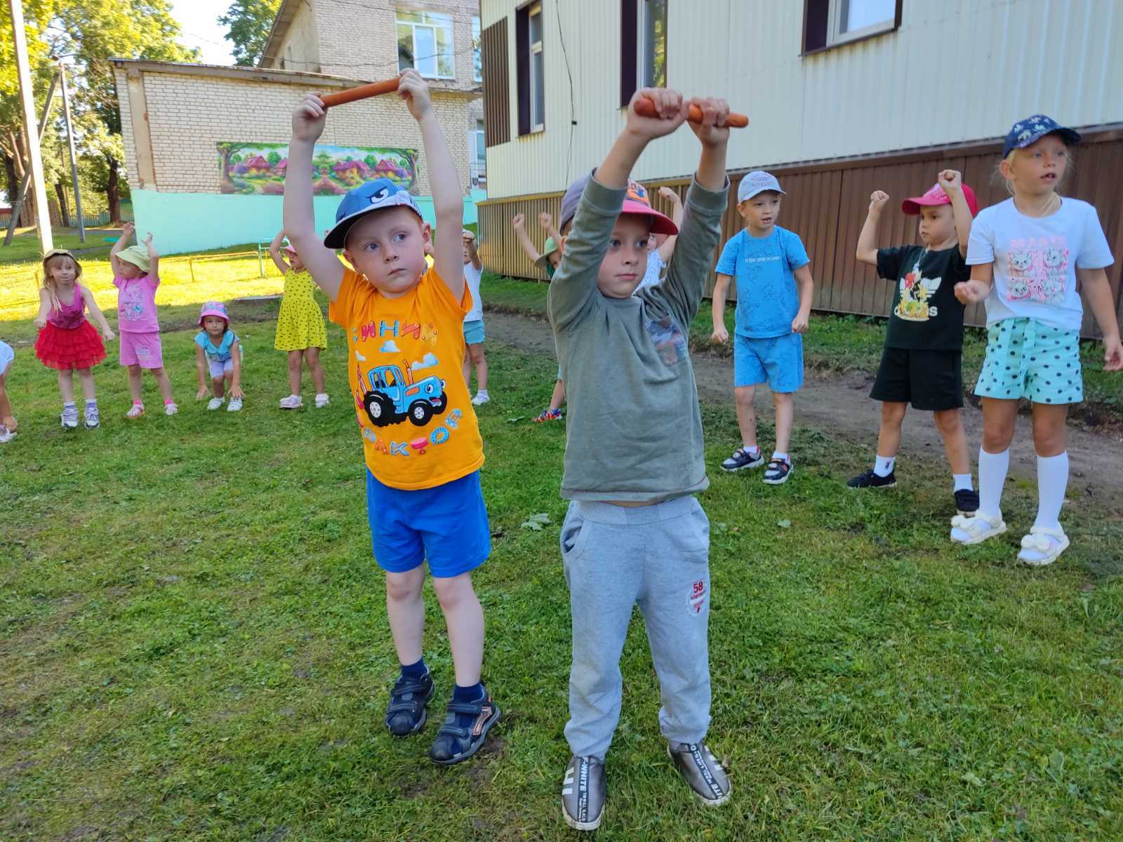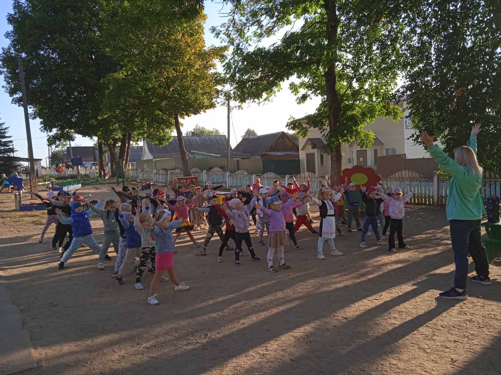 Далее утро продолжилось флешмоб-зарядкой " Ну-ка,все вместе!"