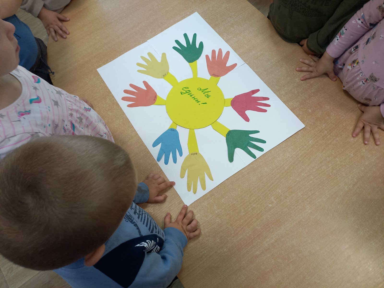 А еще ребята рисовали , лепили " Мы вместе" , делали аппликацию :" Словно радуги цветы- мы едины навсегда", Под солнышком лучистым мы едины" , " Дерево единства и дружбы" ; рассматривали  картинки ," Чем гордятся белорусы", смотрели презентацию ,играли " Вместе мы одна семья" и много другого