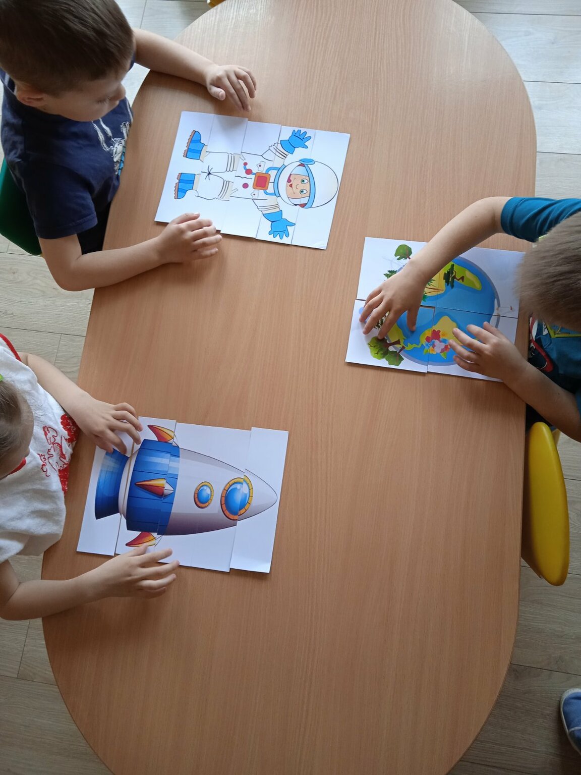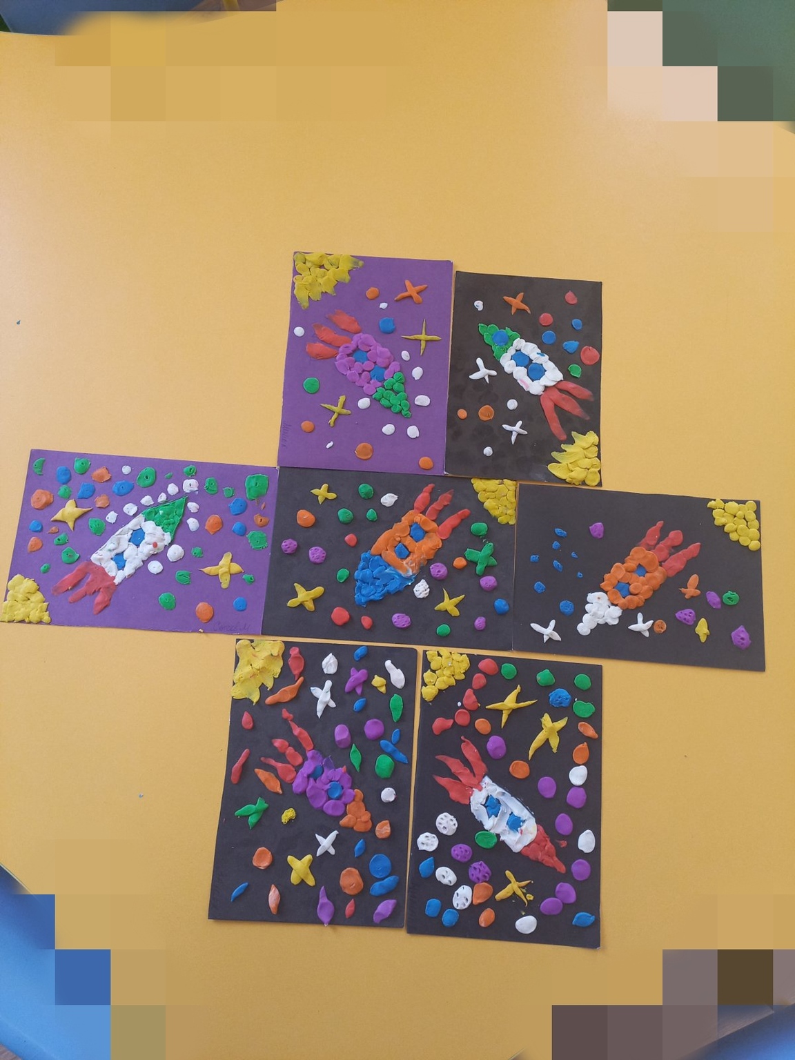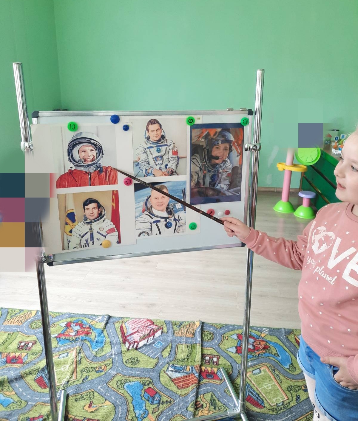 На занятиях по физической культуре дети прошли тренировку юных космонавтов на станции Байконур, где показали ловкость, сноровку, силу, путешествовали в космос, а также  придумывали неизвестные планеты и ракеты на занятиях по изобразительной деятельности.