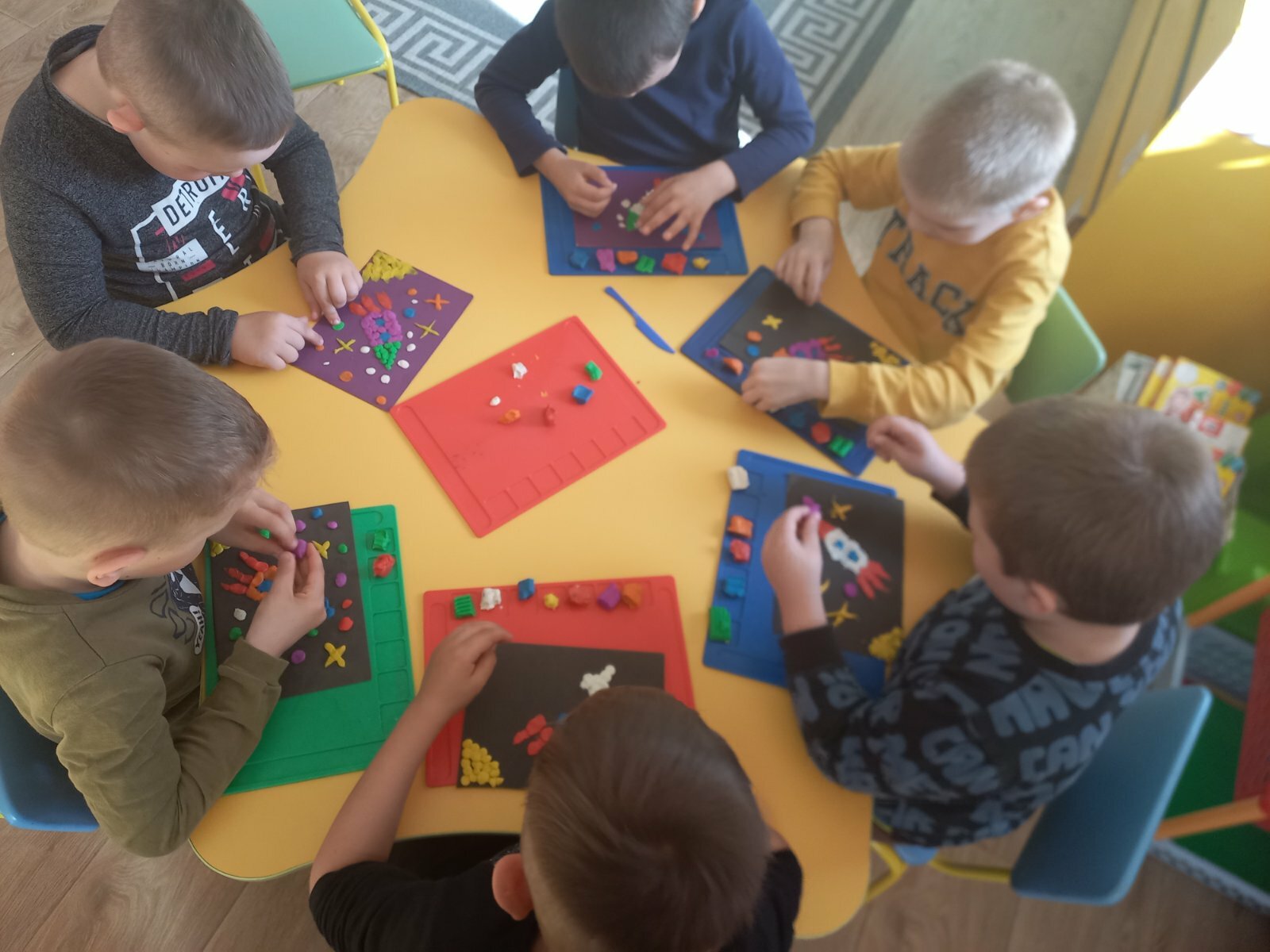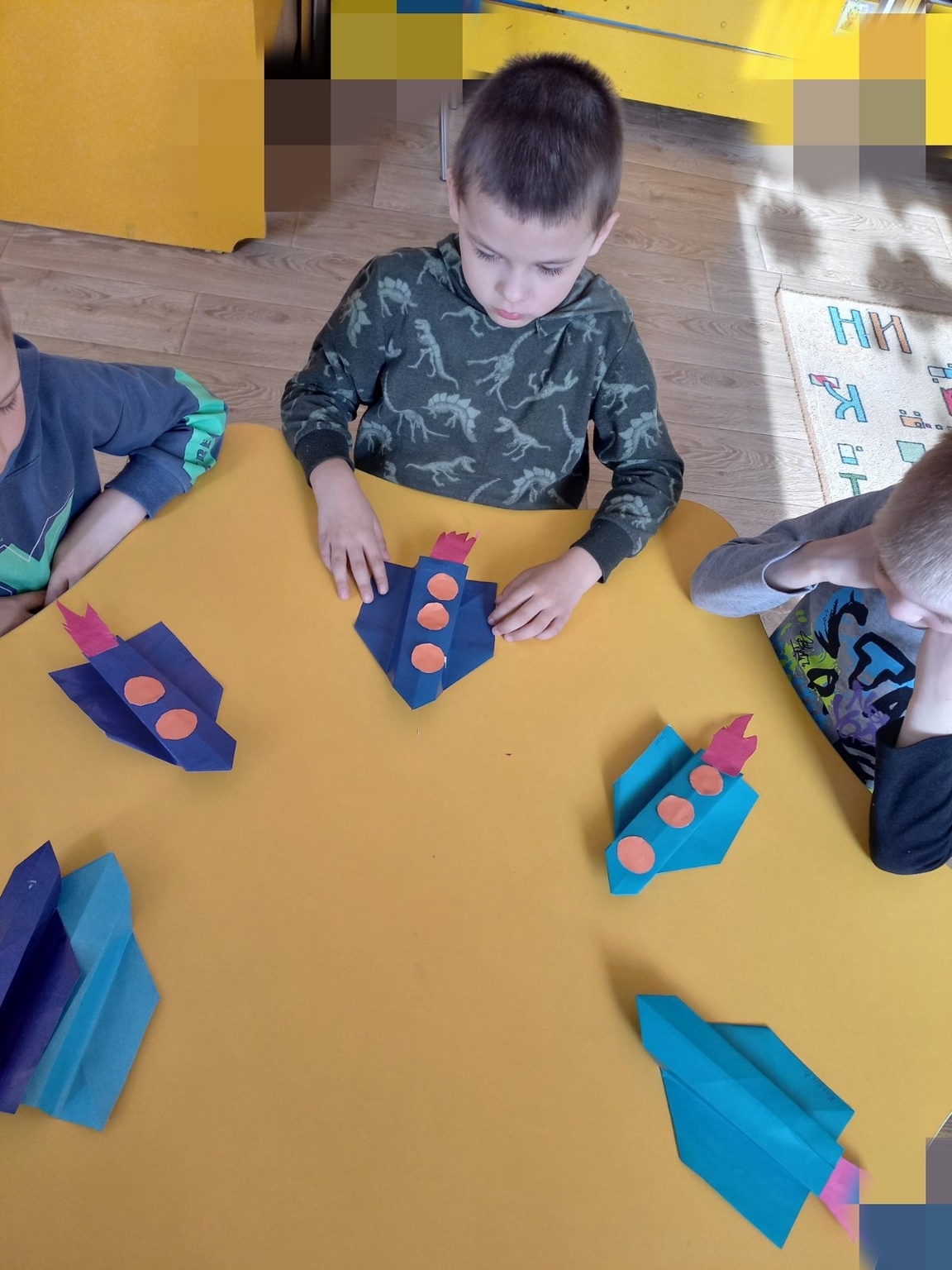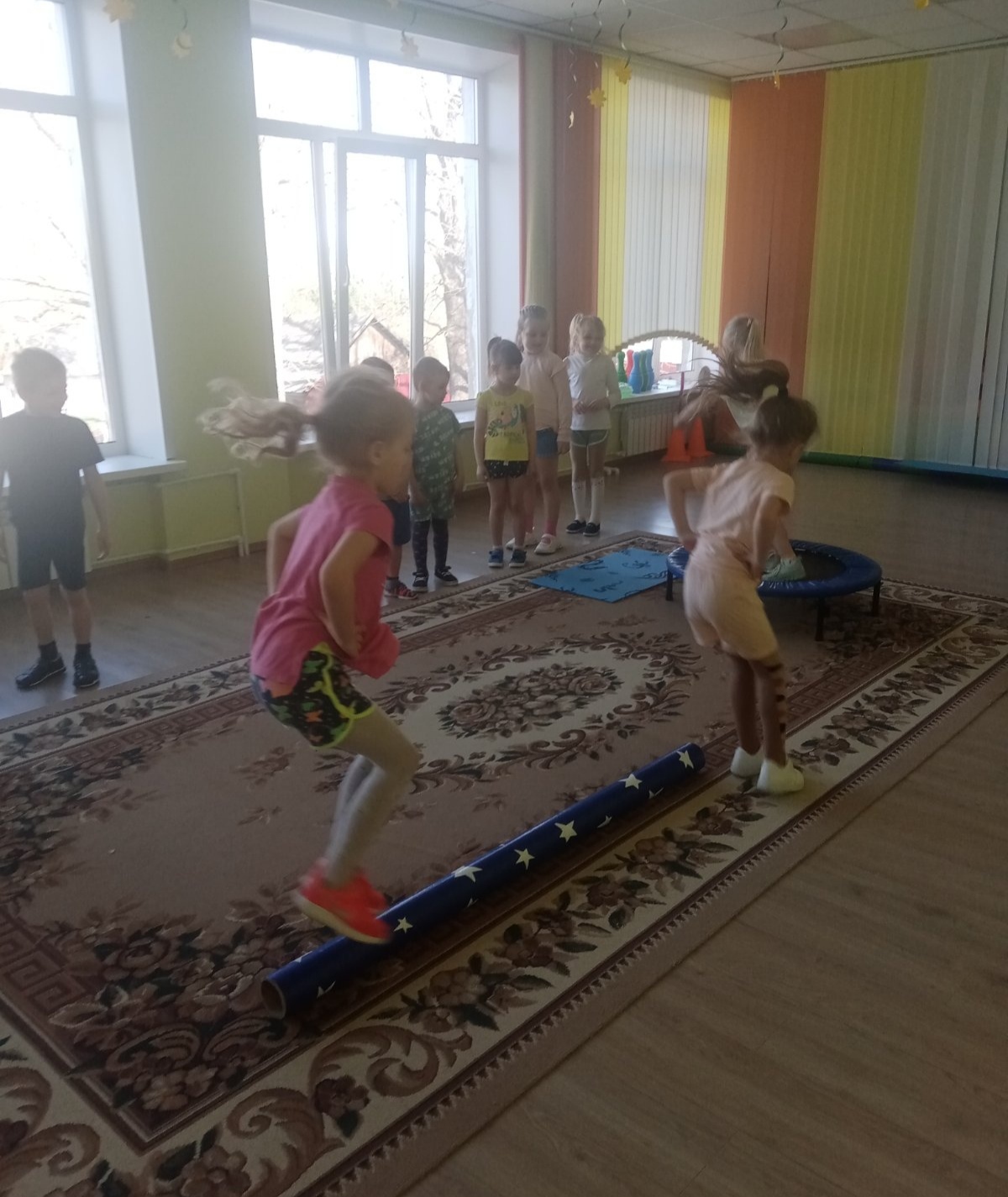 На занятиях по физической культуре дети прошли тренировку юных космонавтов на станции Байконур, где показали ловкость, сноровку, силу, путешествовали в космос, а также  придумывали неизвестные планеты и ракеты на занятиях по изобразительной деятельности.