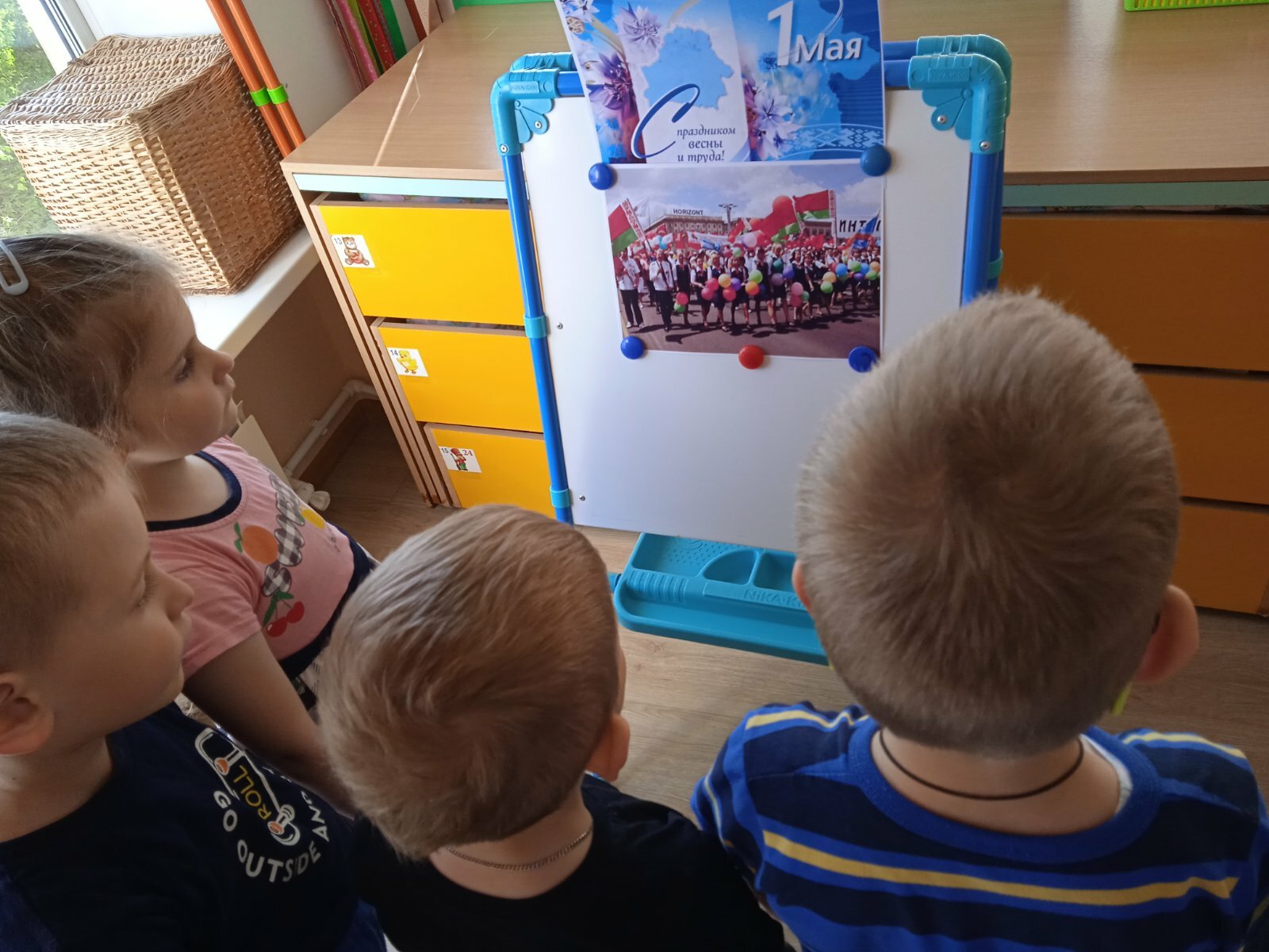 В преддверии праздника 1 мая в нашем детском саду, с целью познакомить дошкольников с историей возникновения праздника Весны и Труда, расширить кругозор, воспитать чувство уважения к государственным праздникам Республики Беларусь  и традиционно для воспитанников учреждения утро началось с прослушивания Государственного Гимна Республики Беларусь и поднятия Государственного флага Республики Беларусь.