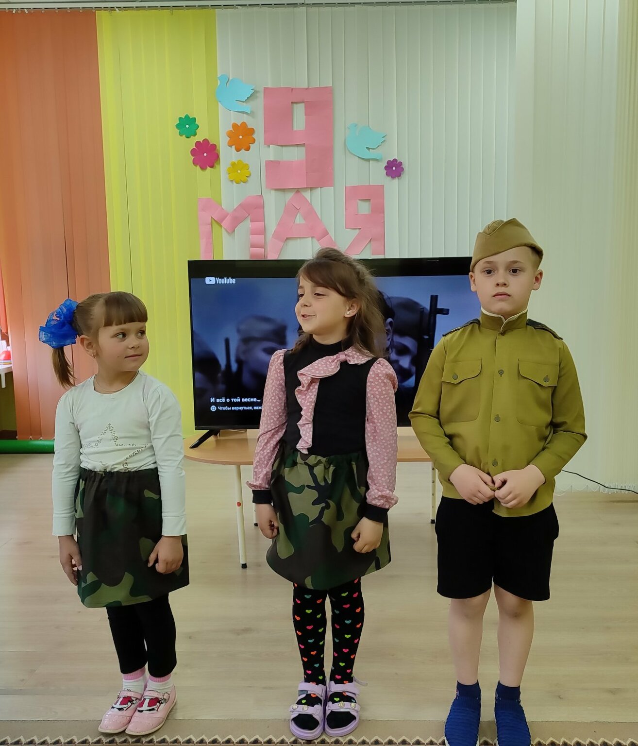 Накануне праздника  в  нашем детском саду прошла тематическая неделя, посвящённая 9мая, где педагогические работники рассказывали детям о важных моментах нашей истории, доступно  объясняли , что такое День Победы, почему мы так свято к нему относимся, почему это радостный праздник со слезами на глазах ,почему нельзя его забывать: рассматривали открытки,альбомы, " письма с фронта", просматривали  видеофильмы,играли в сюжетно-ролевые игры, примеряли военную форму,беседовали , делились впечатлениями.