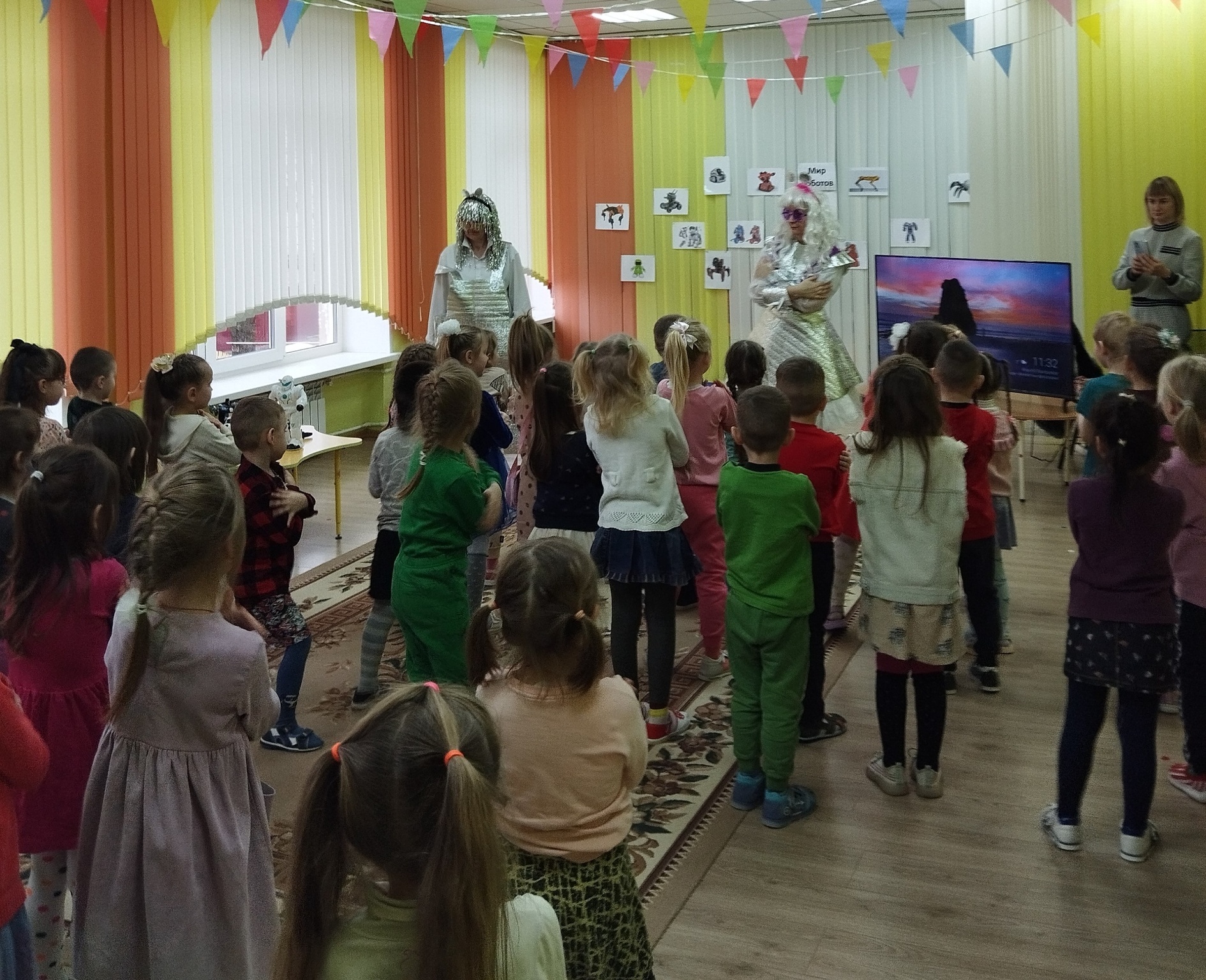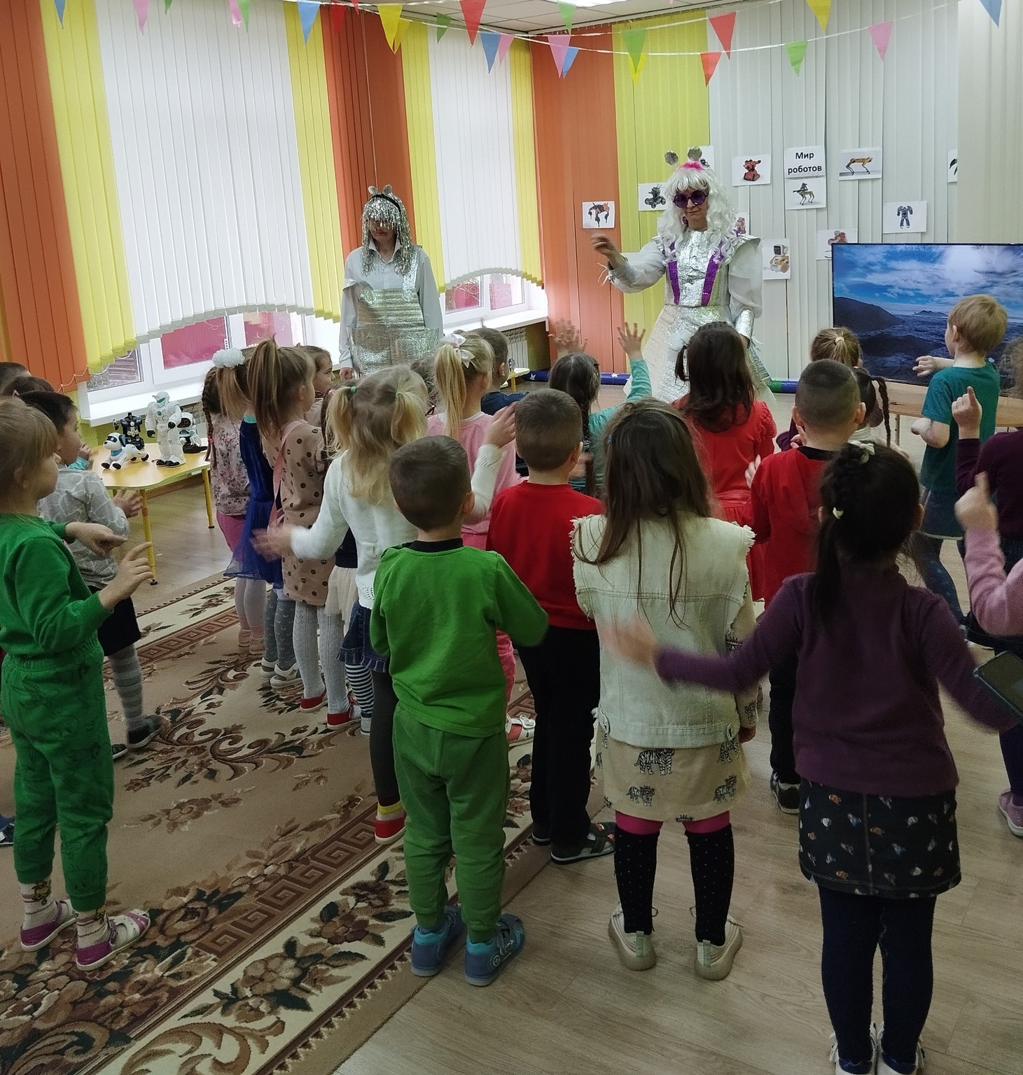 Именно поэтому воспитанники средних и старших групп нашего учреждения получили сегодня приглашение на необычное открытие тематической «Недели изобретательности». Мероприятие открыли Юсики, гости прибывшие из планеты Альфамегацентавр.  Много интересного ребята узнали на выставке о роботах-игрушках, Робопарке, посмотрели мультфильм «Великие изобретатели» и конечно научились двигаться под Роботанцы. Дети были активными участниками, задавали много вопросов , делились впечатлениями и знаниями со сверстниками и взрослыми.