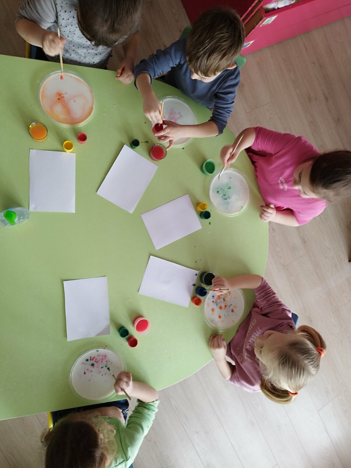 Творческие дни проходят интересно, так как воспитанники всех групп «превратились» в изобретателей, первооткрывателей и волшебников. Ребята работали с пластилином, бумагой, экспериментировали с водой, молоком,  проводили опыты с магнитом и красками.