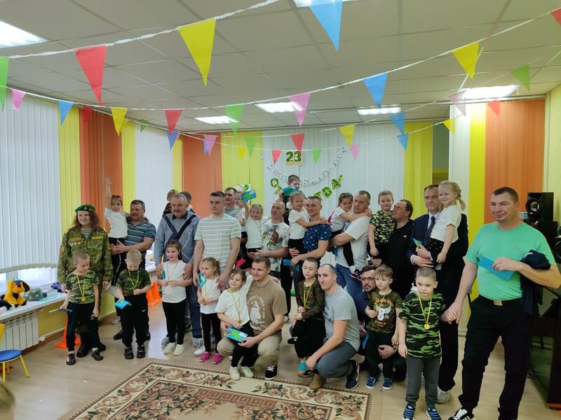 В конце радостного мероприятия участники команд пожали друг другу руки и сделали коллективное фото на память. А маленькие патриоты подарили папам подарки ,сделанные своими руками.
