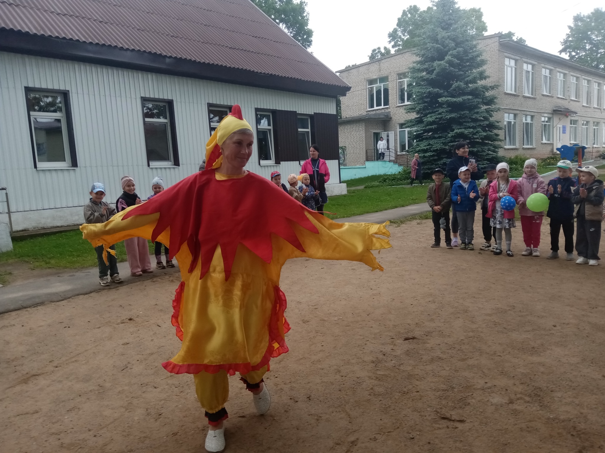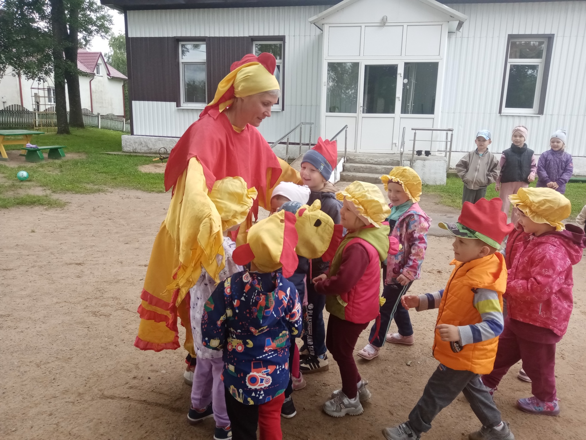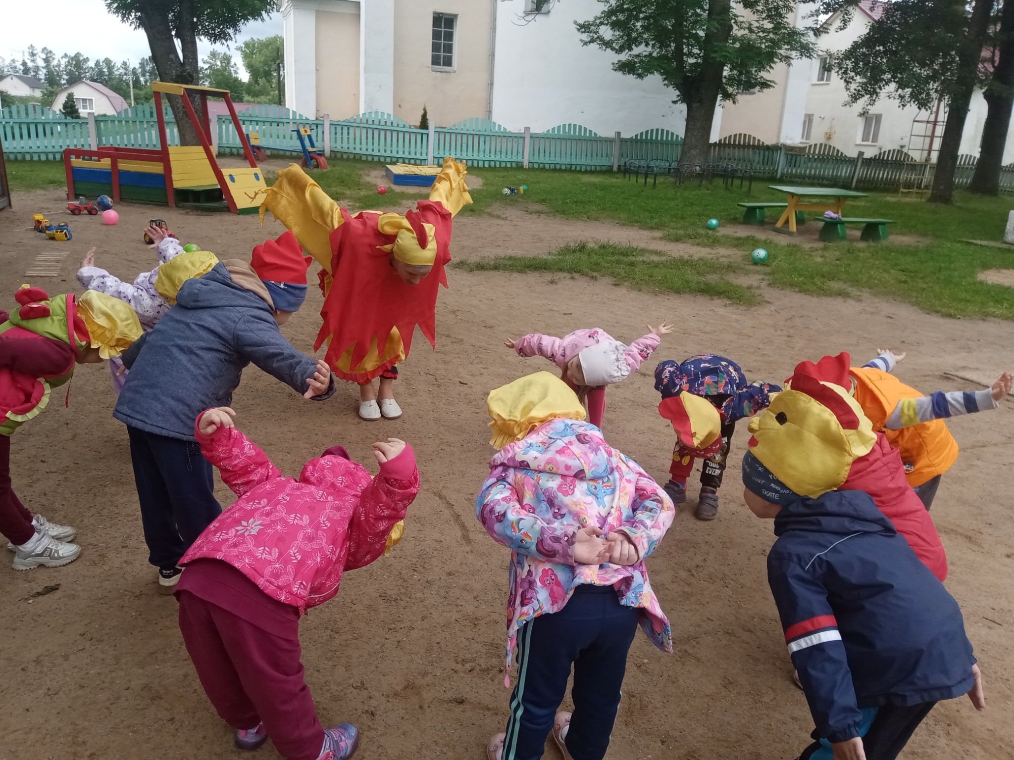 Сегодня 23 июня прошёл физкультурный досуг для воспитанников вторых младших групп учреждения « Вышла курочка гулять»