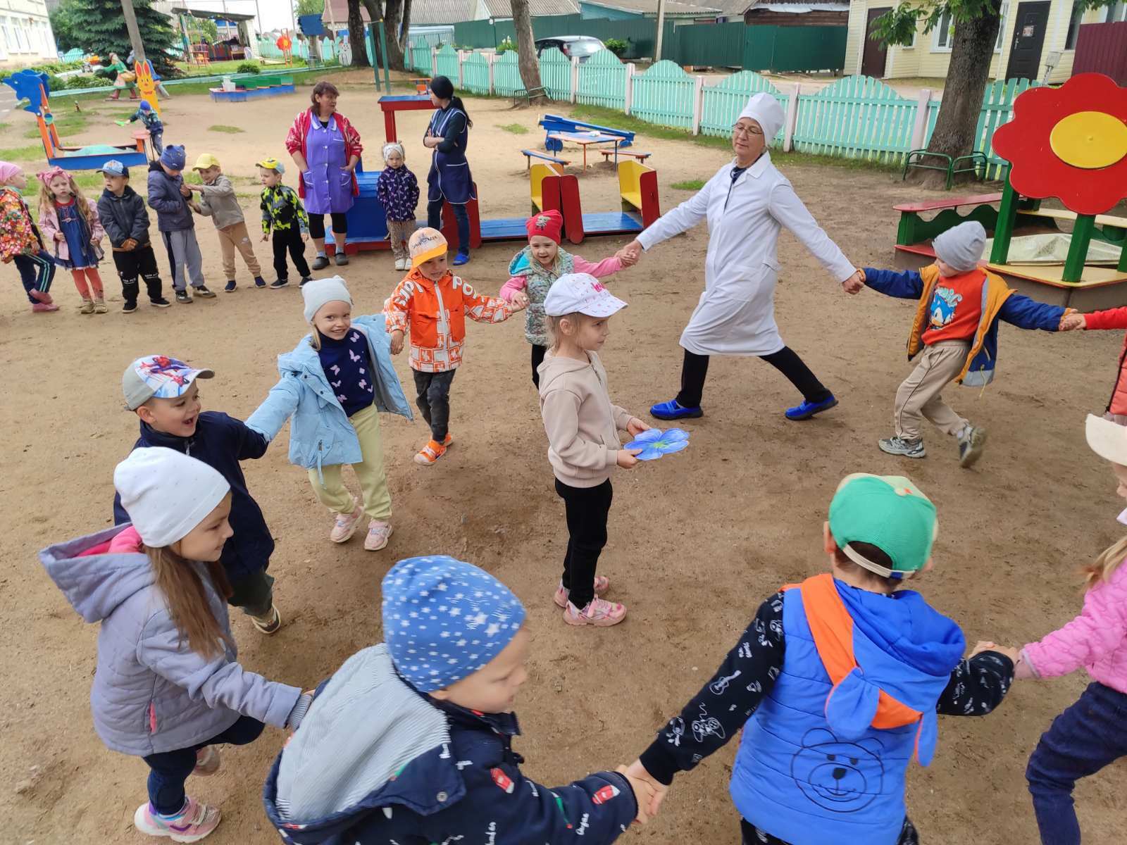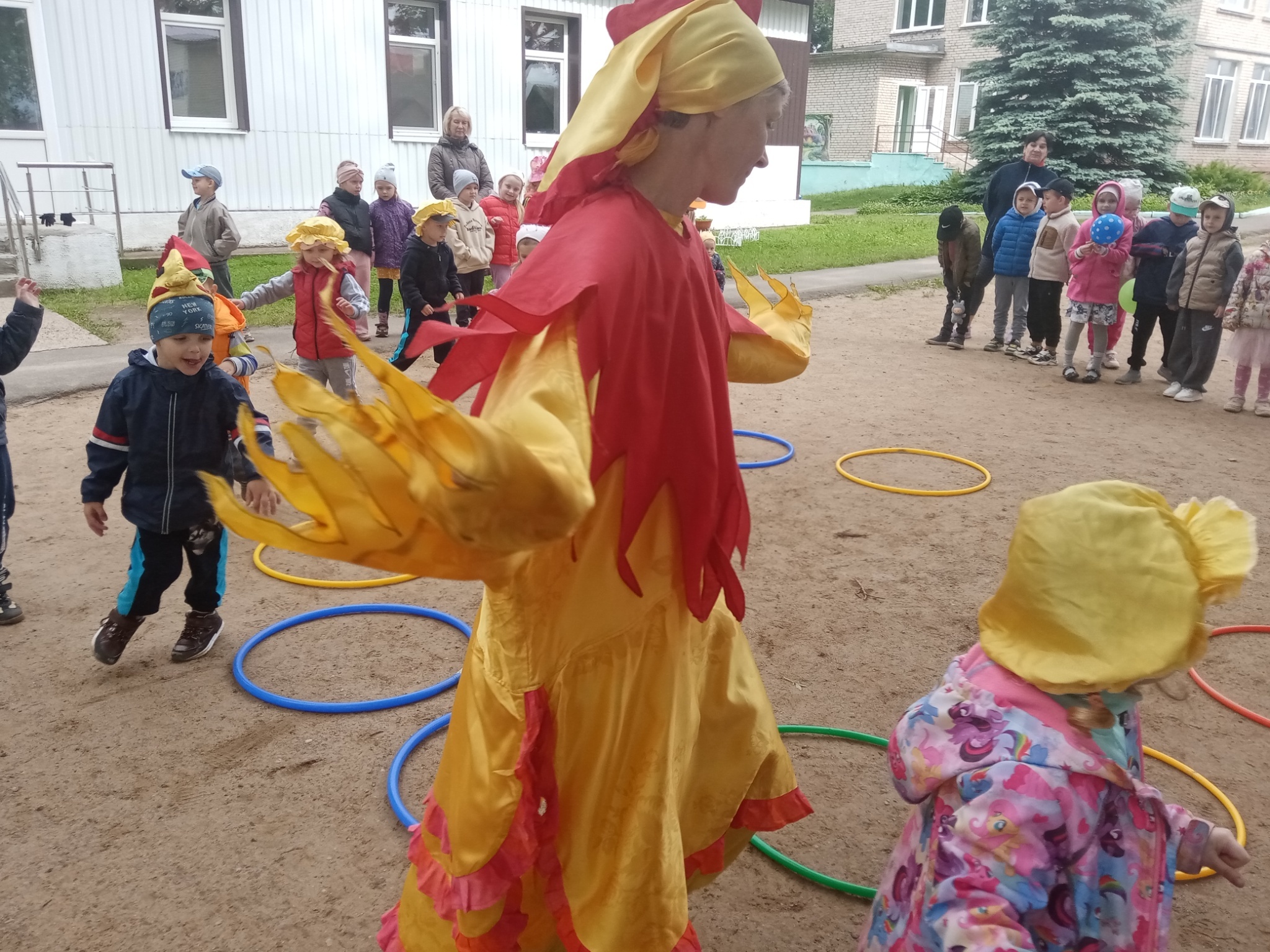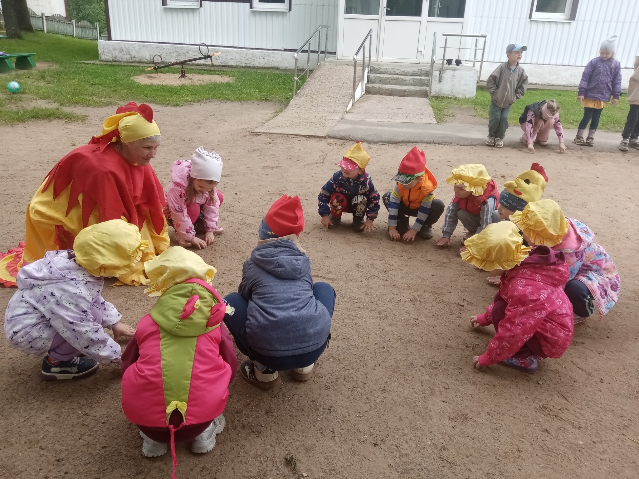 Сегодня 23 июня прошёл физкультурный досуг для воспитанников вторых младших групп учреждения « Вышла курочка гулять»