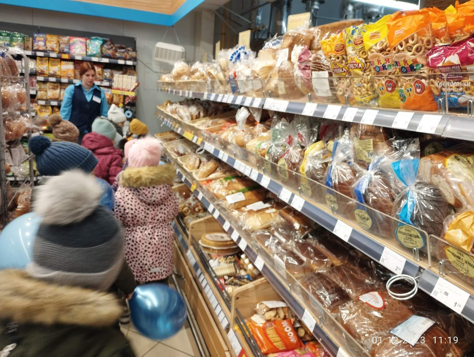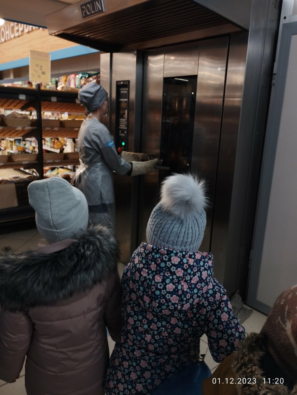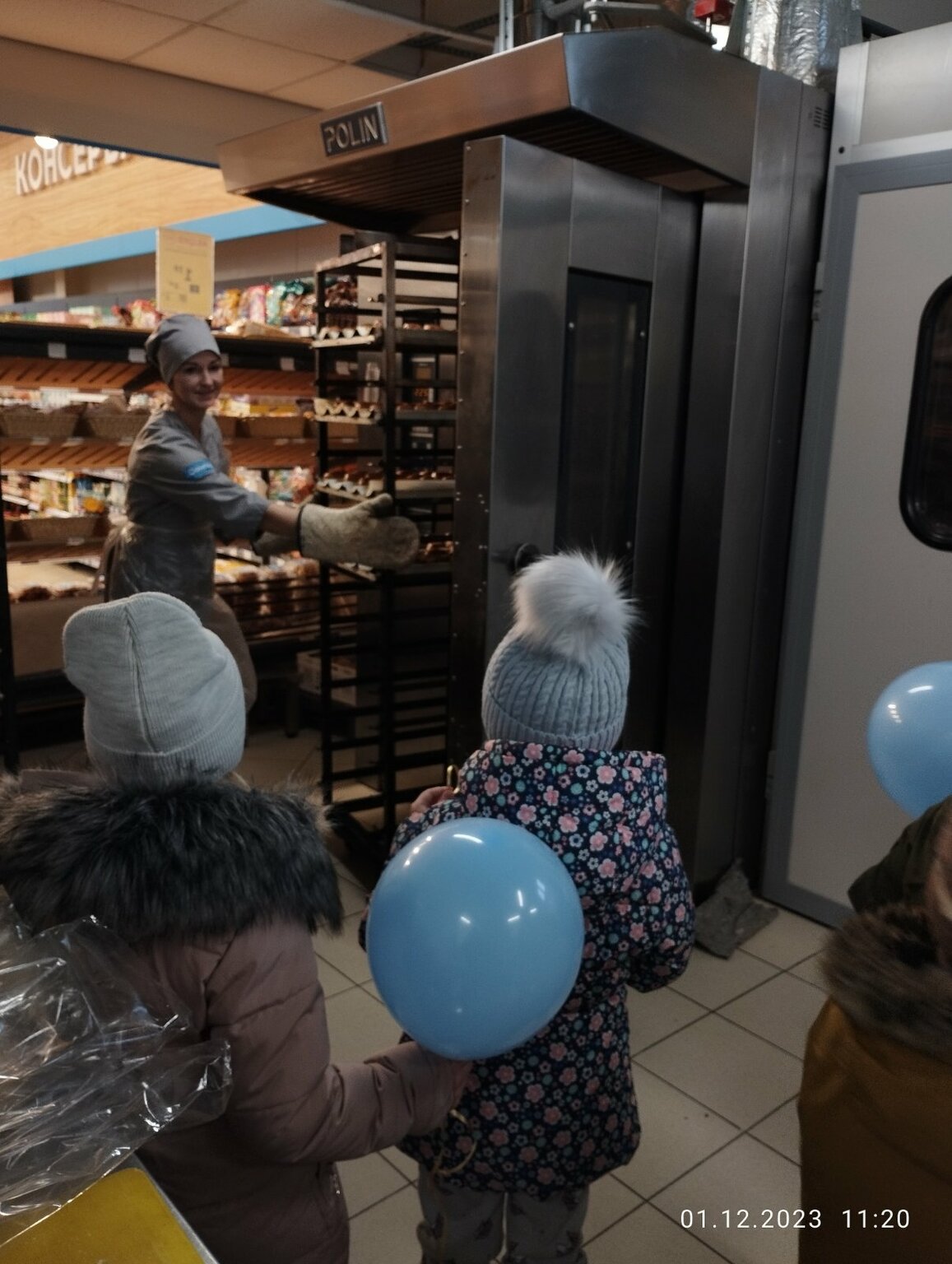 Ребята  познакомились с продукцией разных отделов, с ассортиментом продуктов, посетили цех изготовления выпечки и хлебобулочных изделий. Здесь воспитанники увидели процесс замешивания теста, а затем насладились ароматом свежеприготовленного хлеба, который пекарь достал из большой специальной печки. Затем маленькие покупатели отправились выбирать товар и оплачивать его  самостоятельно на кассе.