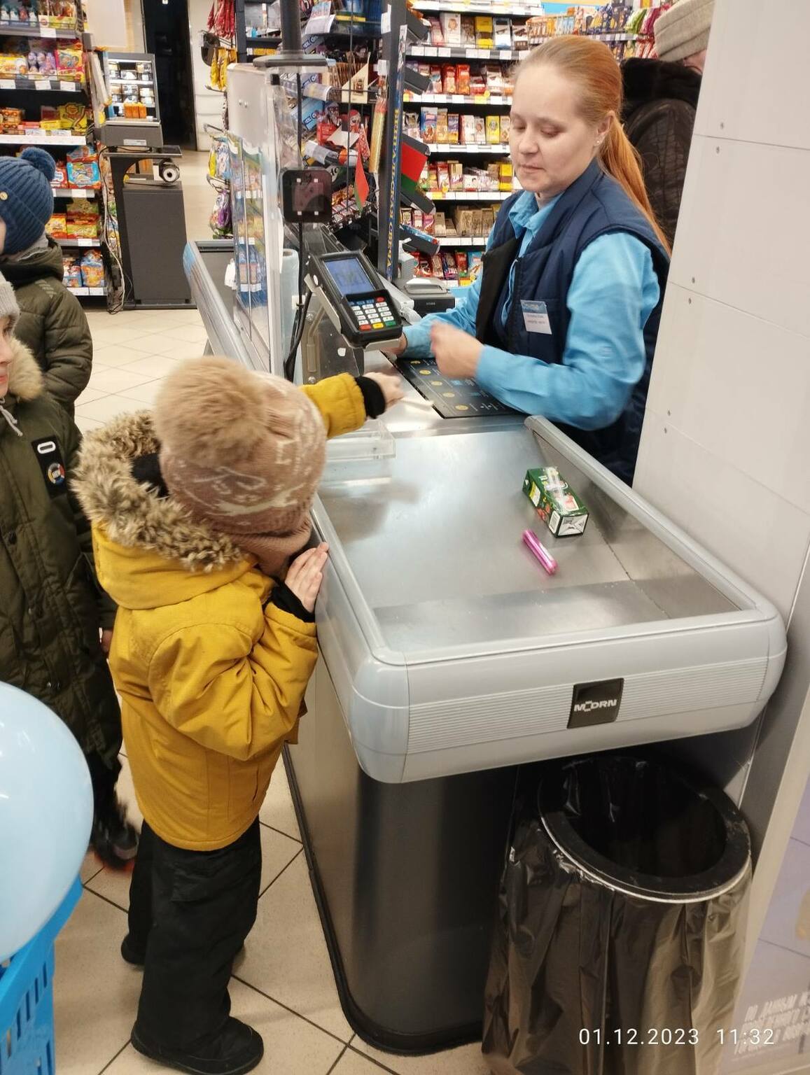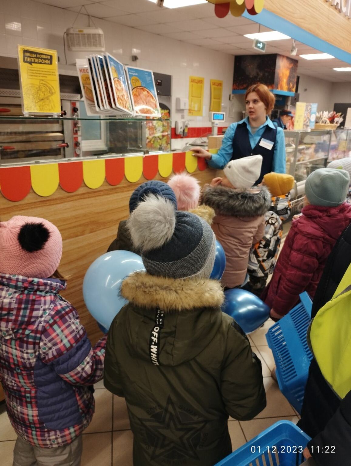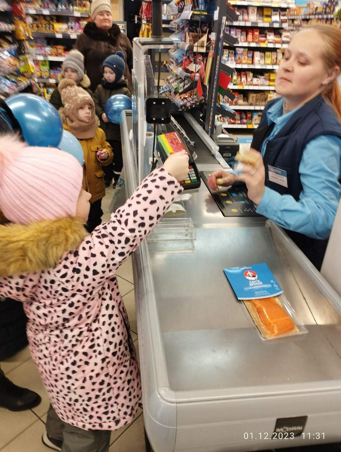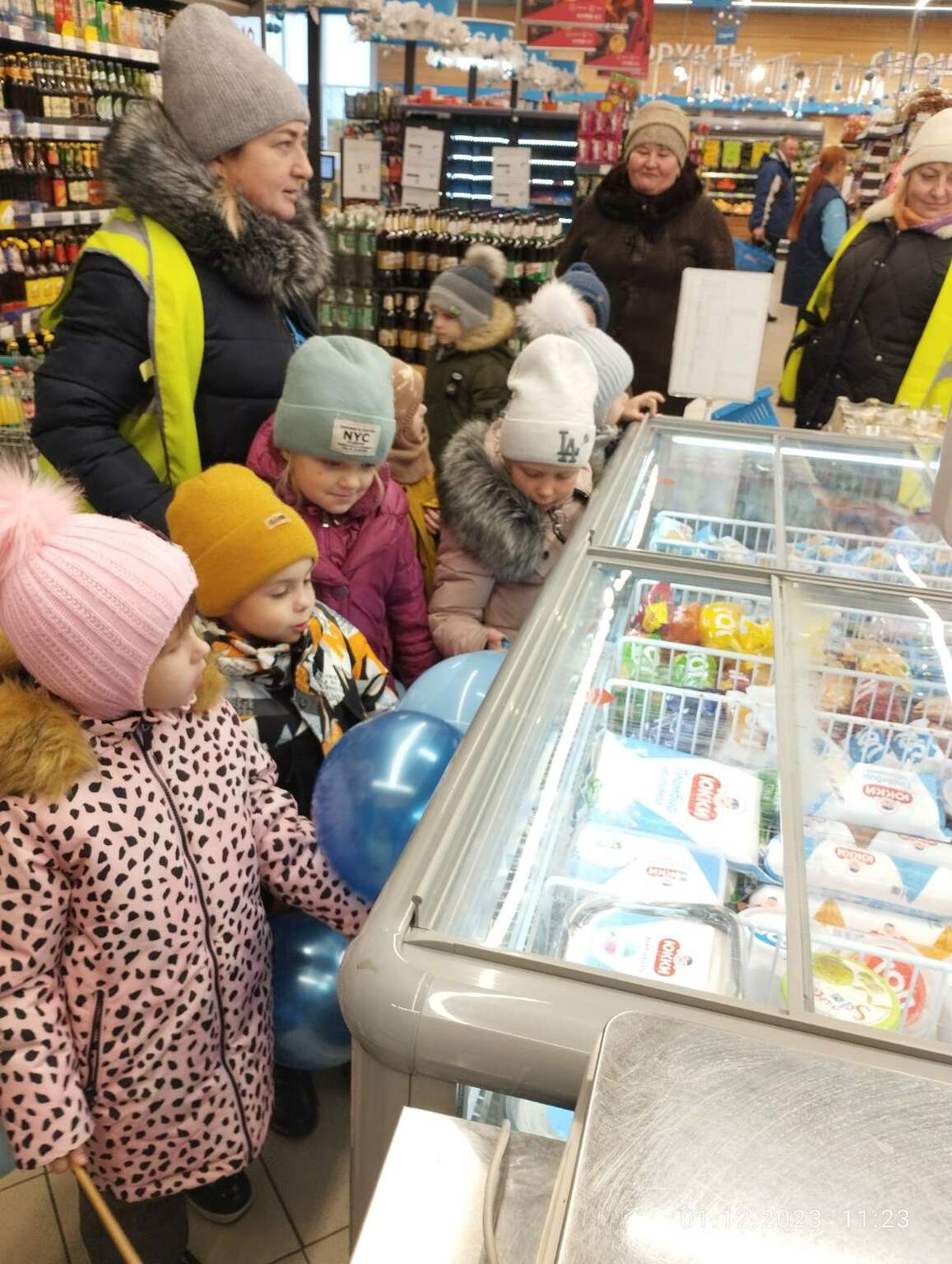 Ребята  познакомились с продукцией разных отделов, с ассортиментом продуктов, посетили цех изготовления выпечки и хлебобулочных изделий. Здесь воспитанники увидели процесс замешивания теста, а затем насладились ароматом свежеприготовленного хлеба, который пекарь достал из большой специальной печки. Затем маленькие покупатели отправились выбирать товар и оплачивать его  самостоятельно на кассе.