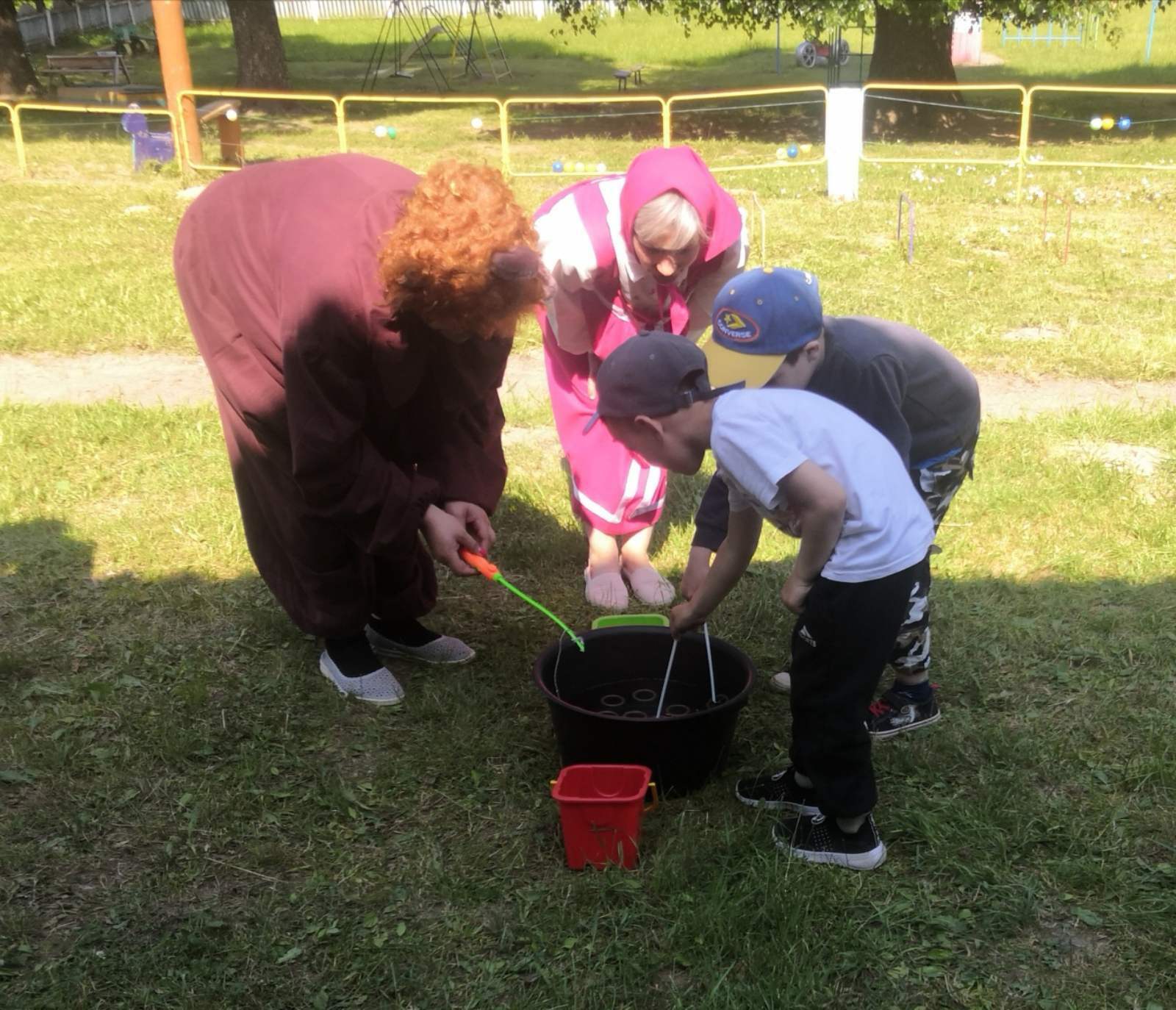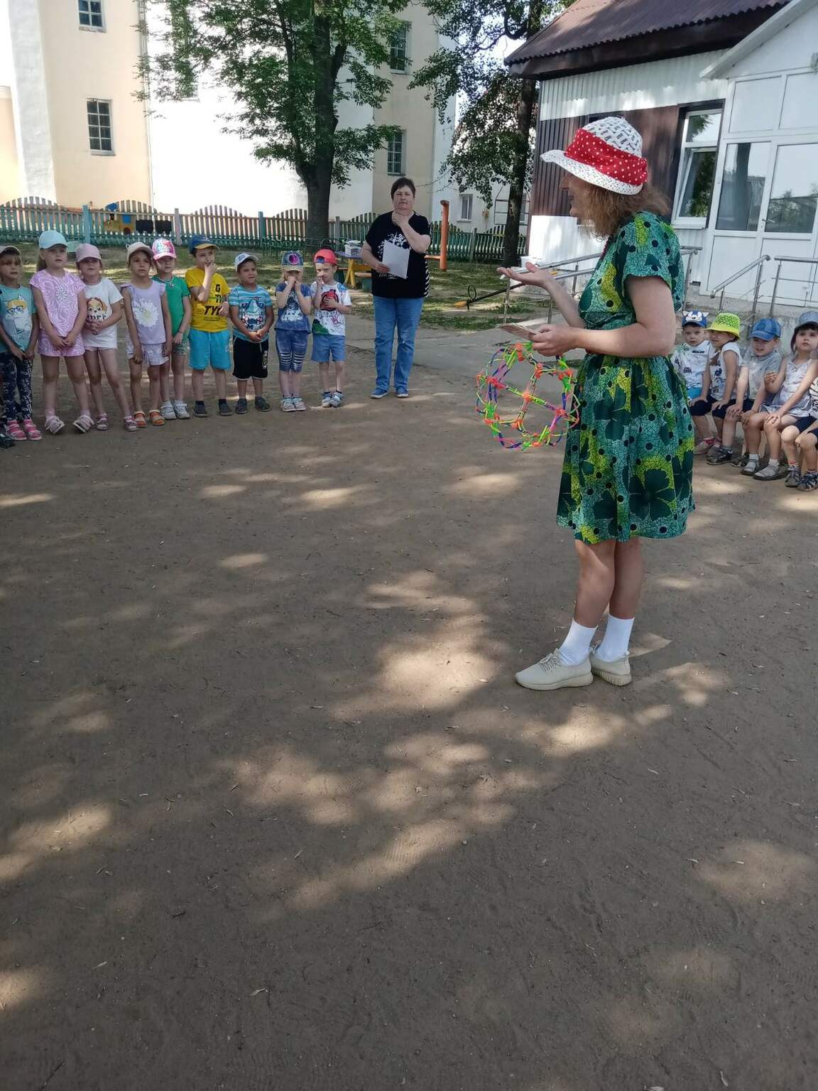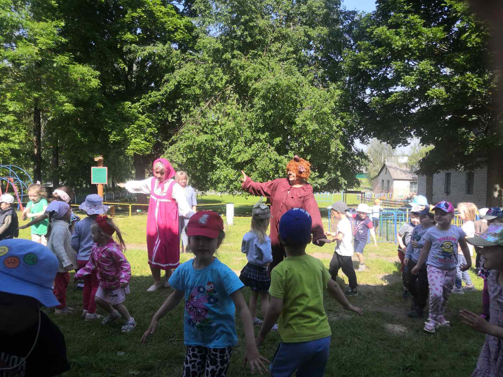 Летом очень красиво, свежий воздух, поэтому 09 июня на свежем воздухе  радостно, звонко и красочно прошло развлечение для детей нашего детского сада   « Летние забавы с Машей и медведем» .