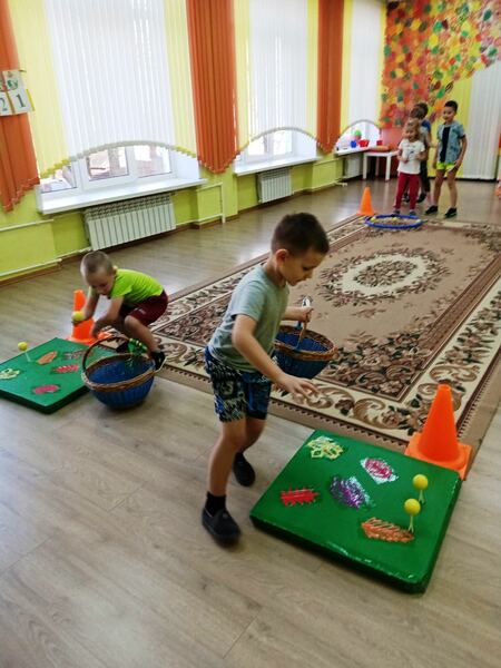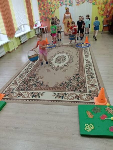 В старших группах прошёл спортивный праздник "Осенние старты". Две команды воспитанников "Овощи" и "Фрукты" с интересом участвовали в различных эстафетах на глазах Царицы Осени ("По лужам", "Перенси урожай", "В лес по грибы" и др.) Учавствуя в эстафетах ребята узнавали о пользе овощей и фруктов. На протяжении праздника дети учились помогать друг другу, радоваться успехам и поддерживать при неудачах друзей, действовать по команде.