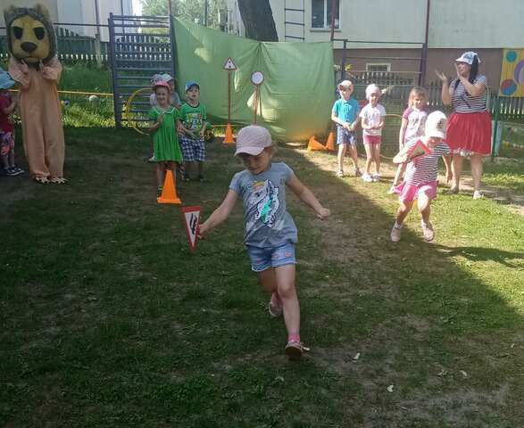 Сеодняшний день для детей  оказался ярким  и интересным - в нашем учреждении  прошел спортивный праздник на знания правил дорожного движения "Каникулы льва Бонифация". Здесь настроение всем присутствующим задавали лев Бонифаций и необычная гостья  Помеха - Неумеха. Детям было предложено 5 эстафет, целью которых являлись в игровой форме:
