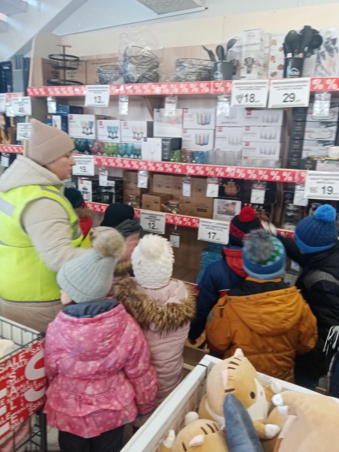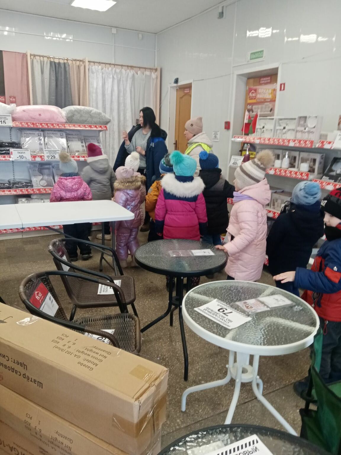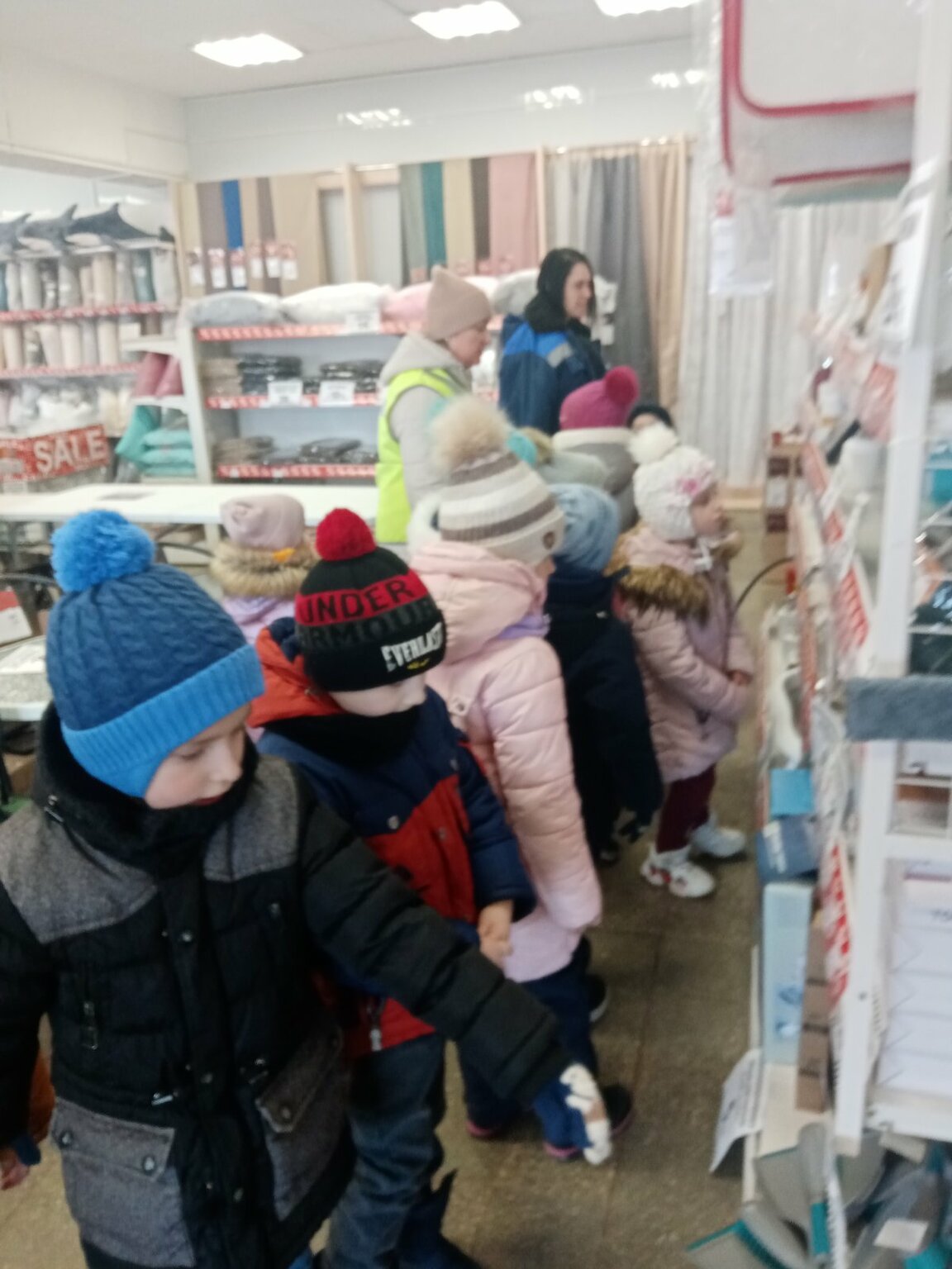 Ребят встретили внимательные и доброжелательные продавцы, которые рассказали детям о своей профессиии и о  том,что в магазине можно купить много полезных товаров для домашнего уюта:мебель,часы, шторы,посуда,мягкие игрушки,спортивный инвентарь и другие предметы интерьера.