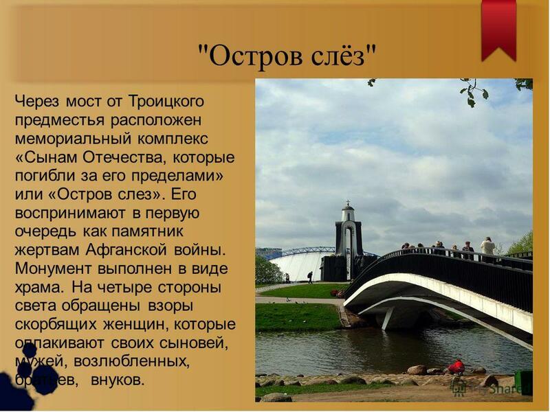 Символом памяти об афганской войне является мемориальный комплекс «Остров Мужества и Скорби» в Минске, строительство которого было начато в 1988 году, ещё до завершения войны. Официально комплекс был открыт 3 августа 1996 года. Центральным элементом мемориала является часовня, внутри которой на четырех алтарях высечены имена 771 павшего бойца-белоруса.( https://warmuseum.by/filialy/memorialnyy-kompleks-pamyatnik-voinam-internatsionalistam/o-filiale/ )