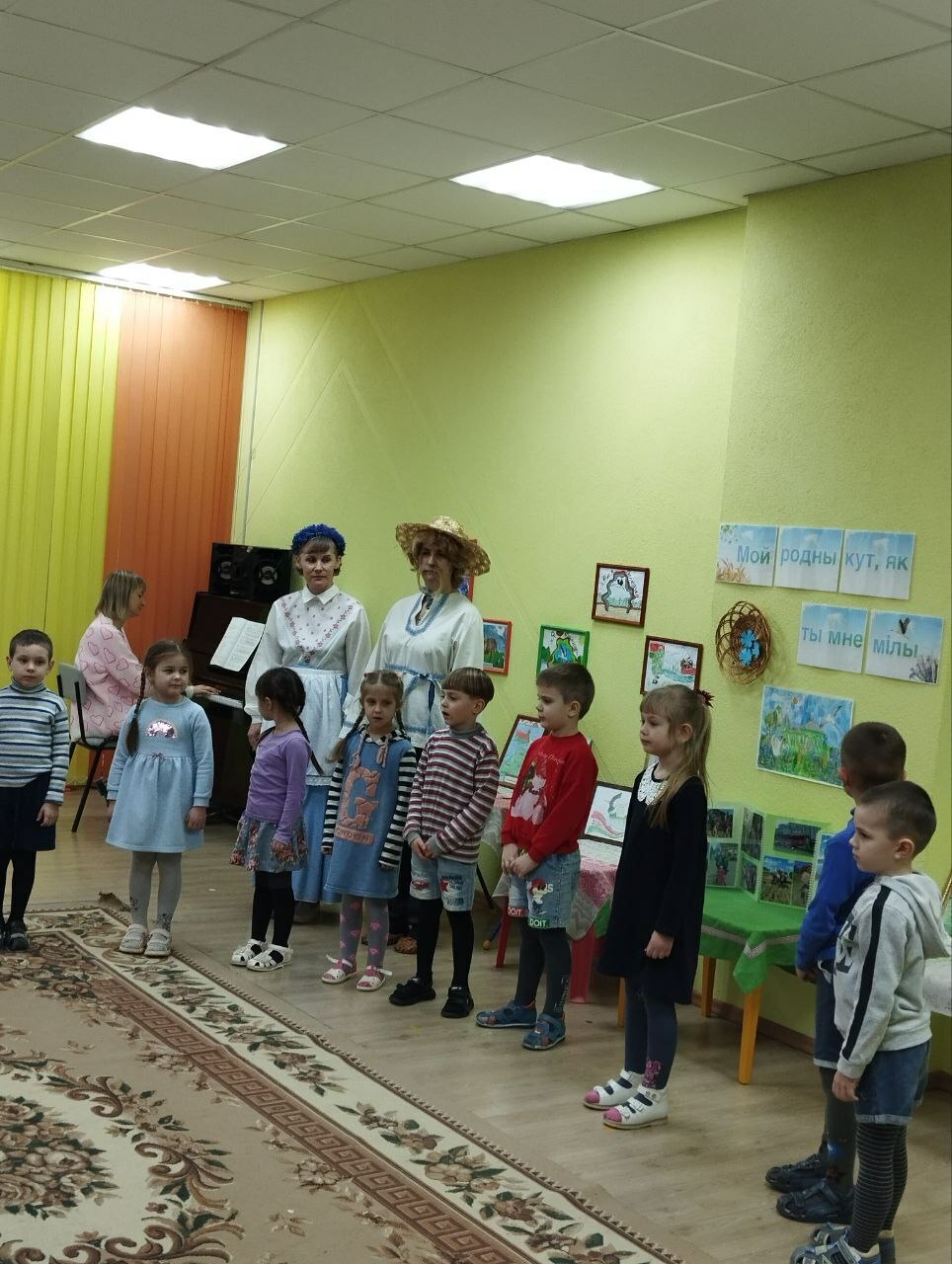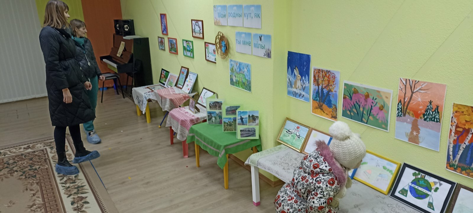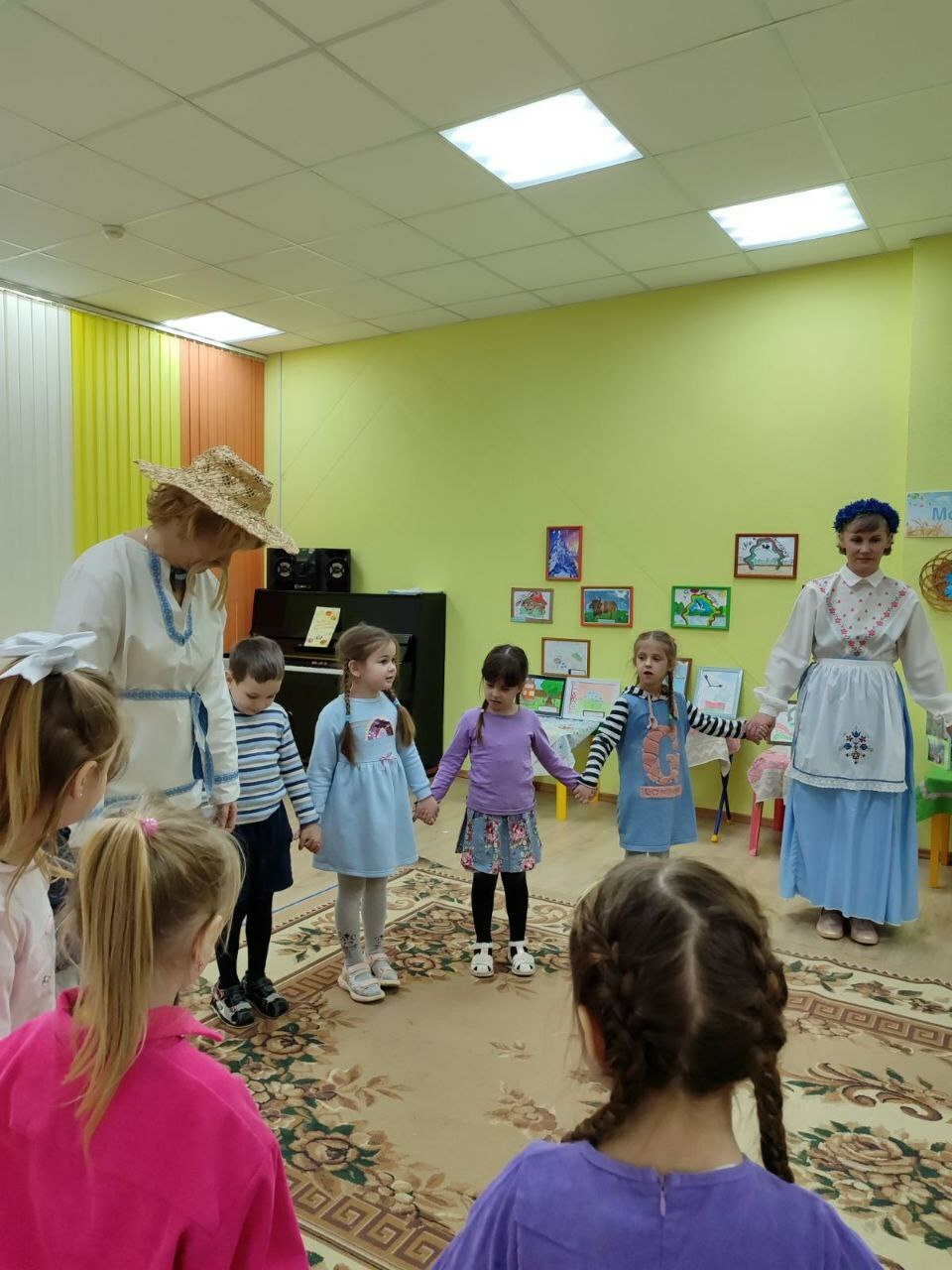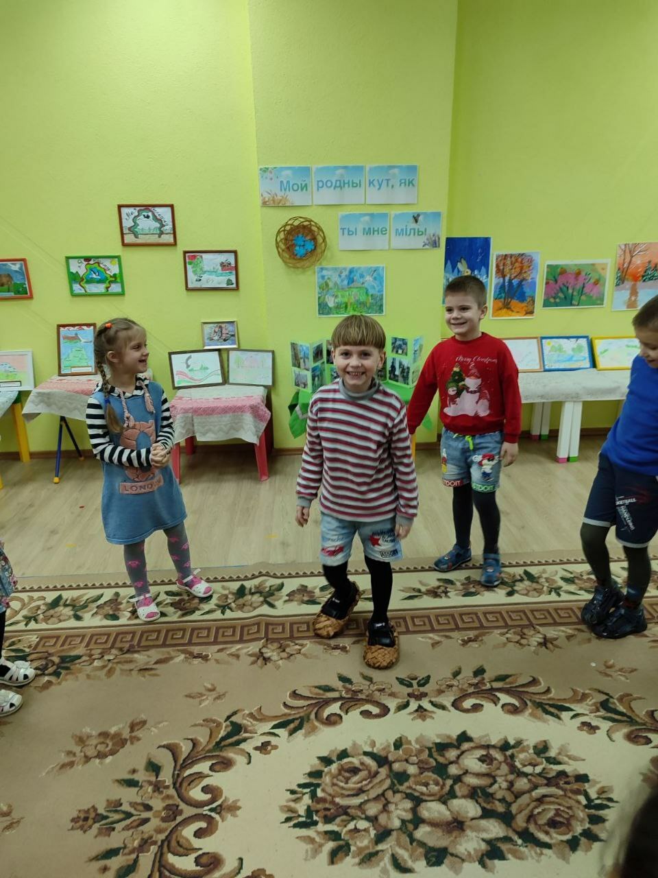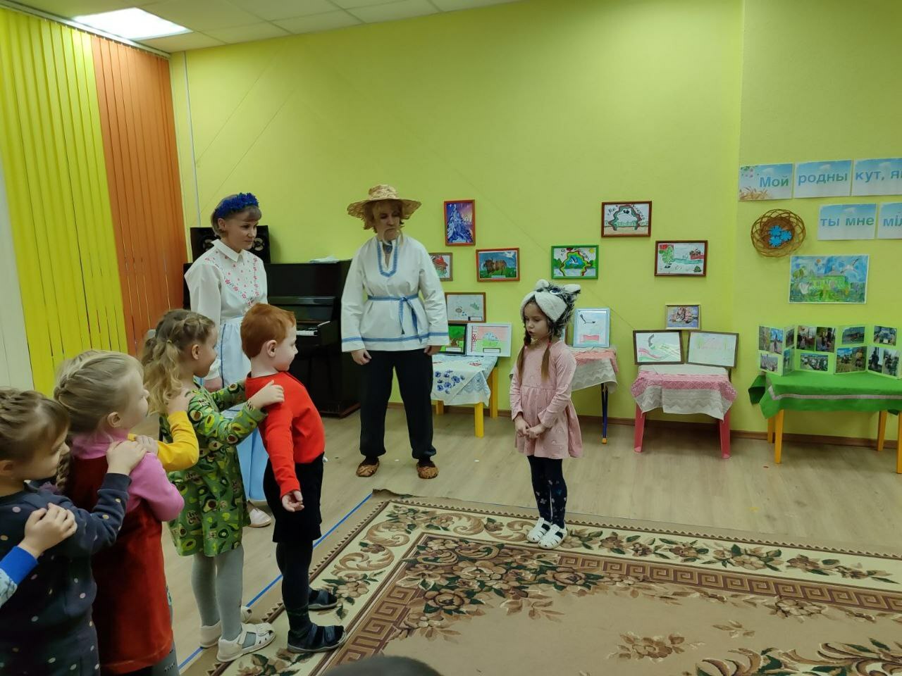 а пригласили детей на выставку любознательные и веселые Янка и Аринка, которые провели с ребятами  викторину «Моя страна -Беларусь и я этим горжусь», поиграли в белорусские народные игры «Шэры кот», «Лапці», «Гарлачык»,мелодично исполнили белорус-ские песни,станцевали «Польку белорус-скую»,«Лявониху».С вдохновением расска-зывали о своих творческих работах и с кем они создавались, вспомнили о жанрах и видах изобразительного искусства, активно делились впечатлениями со сверстниками и другими участниками мероприятия.
