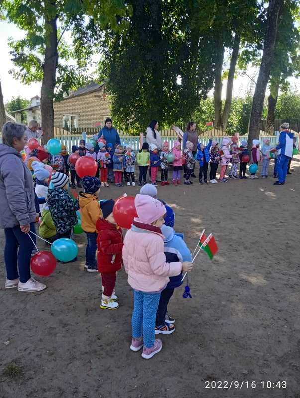 В рамках тематического дня была организована торжественная линейка с прослушиванием Государственного гимна Республики Беларусь и поднятием Государственного флага Республики Беларусь.