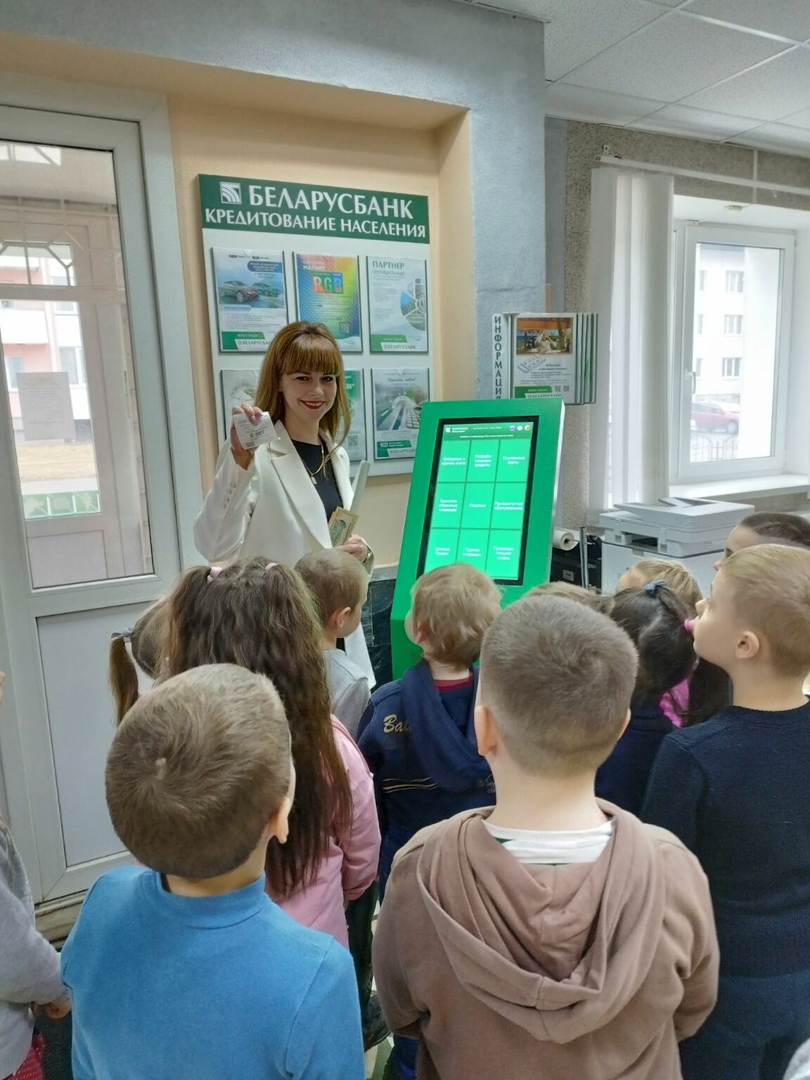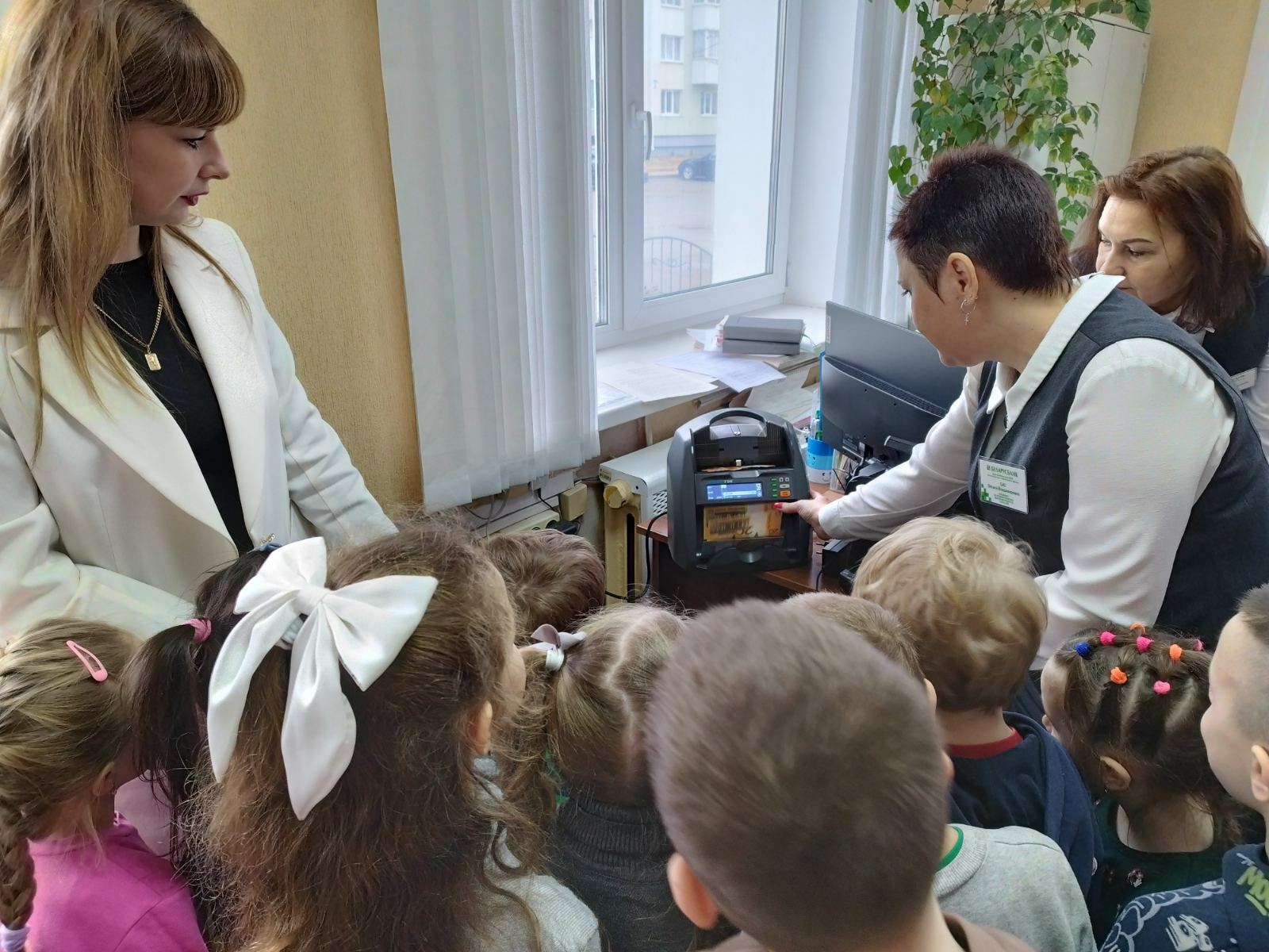 20 марта в рамках Недели финансовой грамотности целью формирования основ экономической культуры и знакомства с трудом взрослых , профессиями и и услугами банка и родным городом воспитанники старшей группы учреждения совершили пешеходную экскурсию в Центре банковских услуг 219 филиала Беларусбанк.