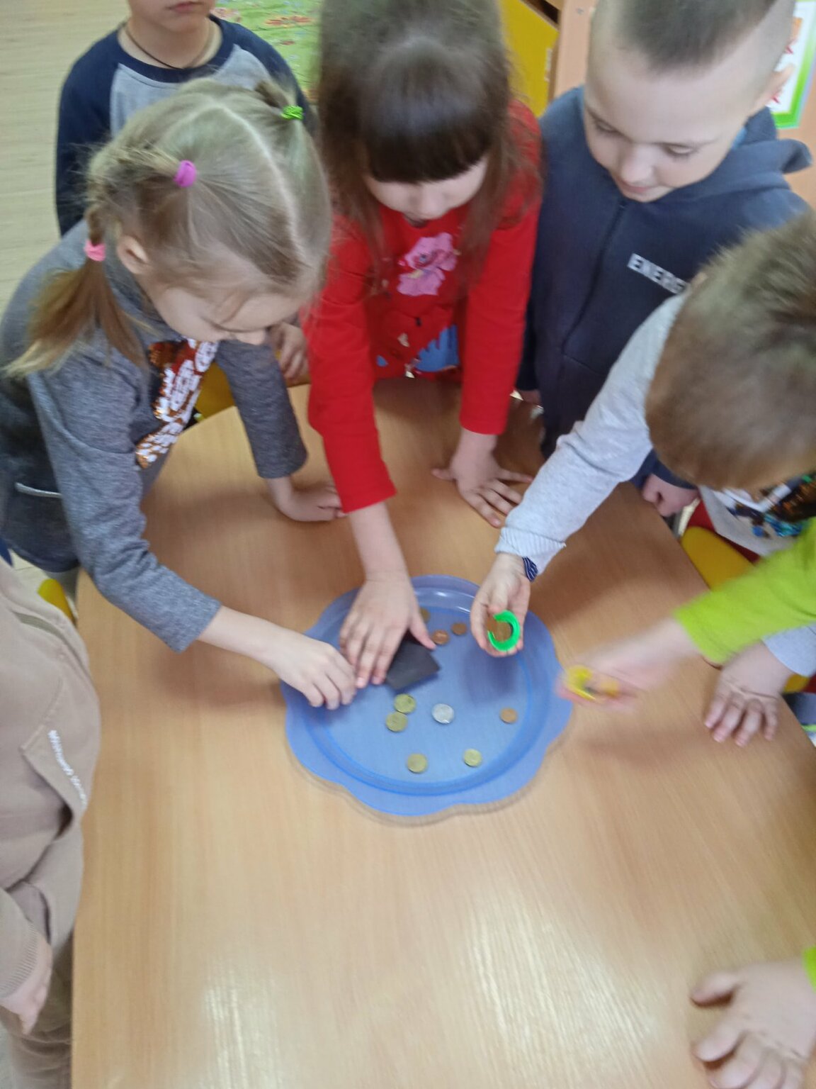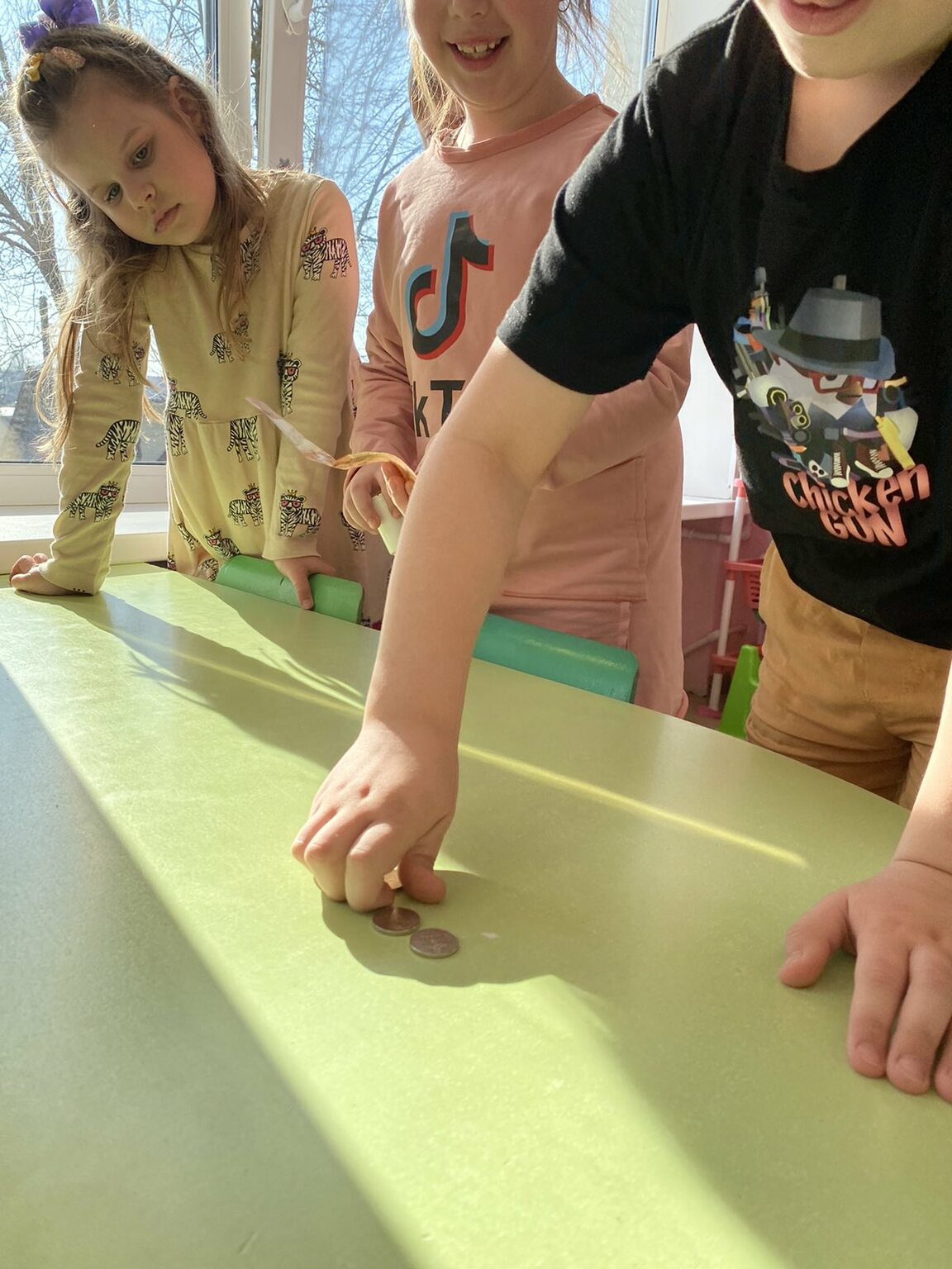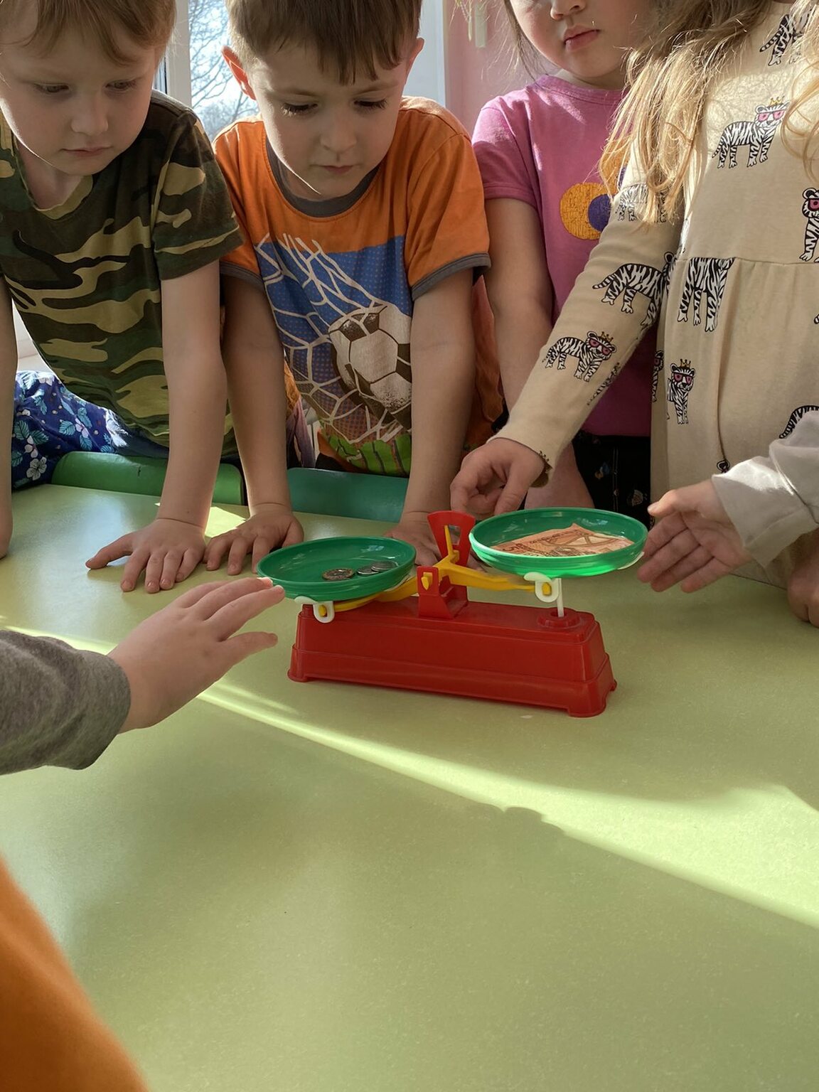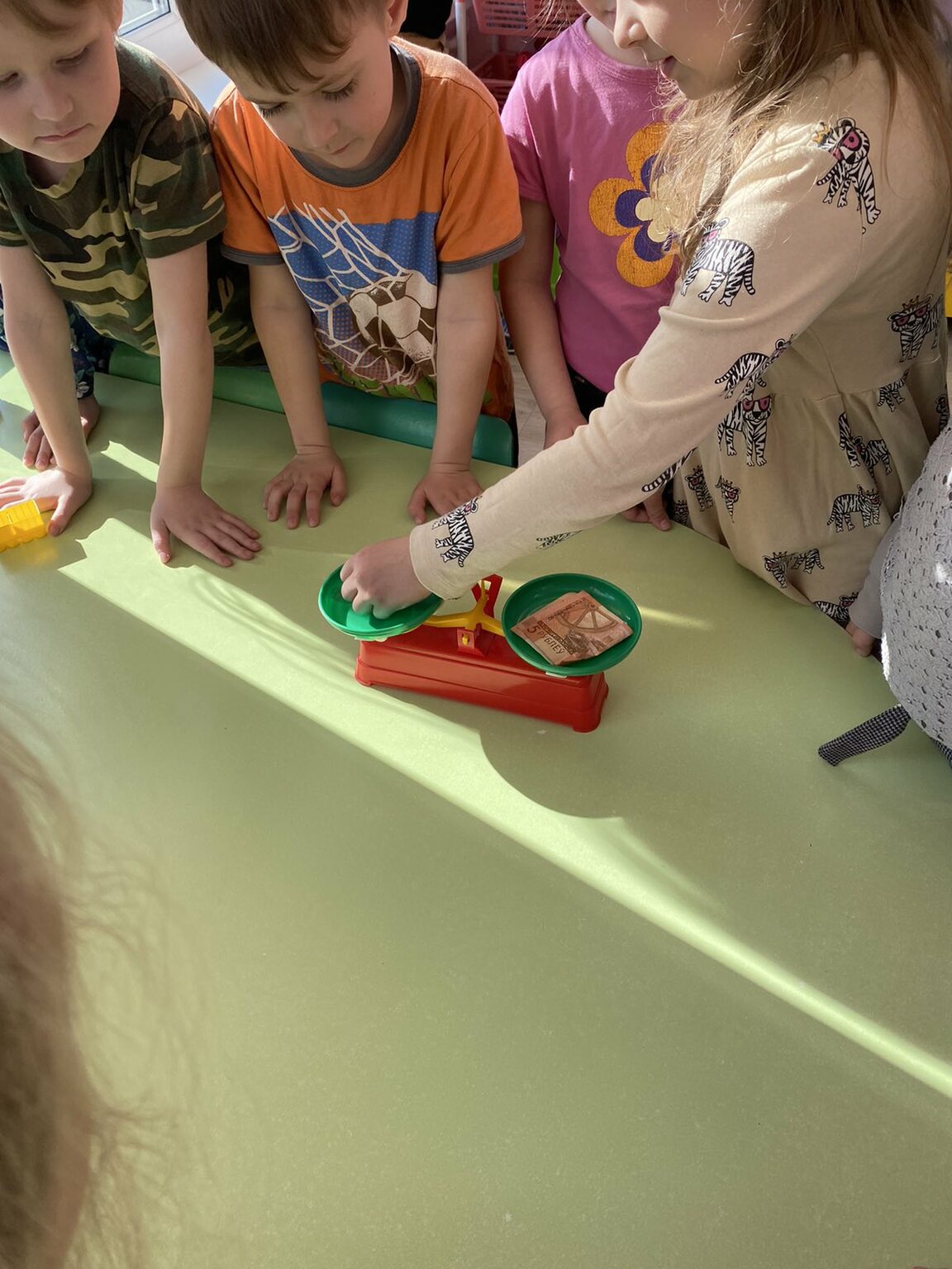 Играли в сюжетно-ролевые игры " Магазин", "Кафе". Проводили разнообразные опыты , эксперименты с деньгами. Рисовали монеты, констуировали кошельки.