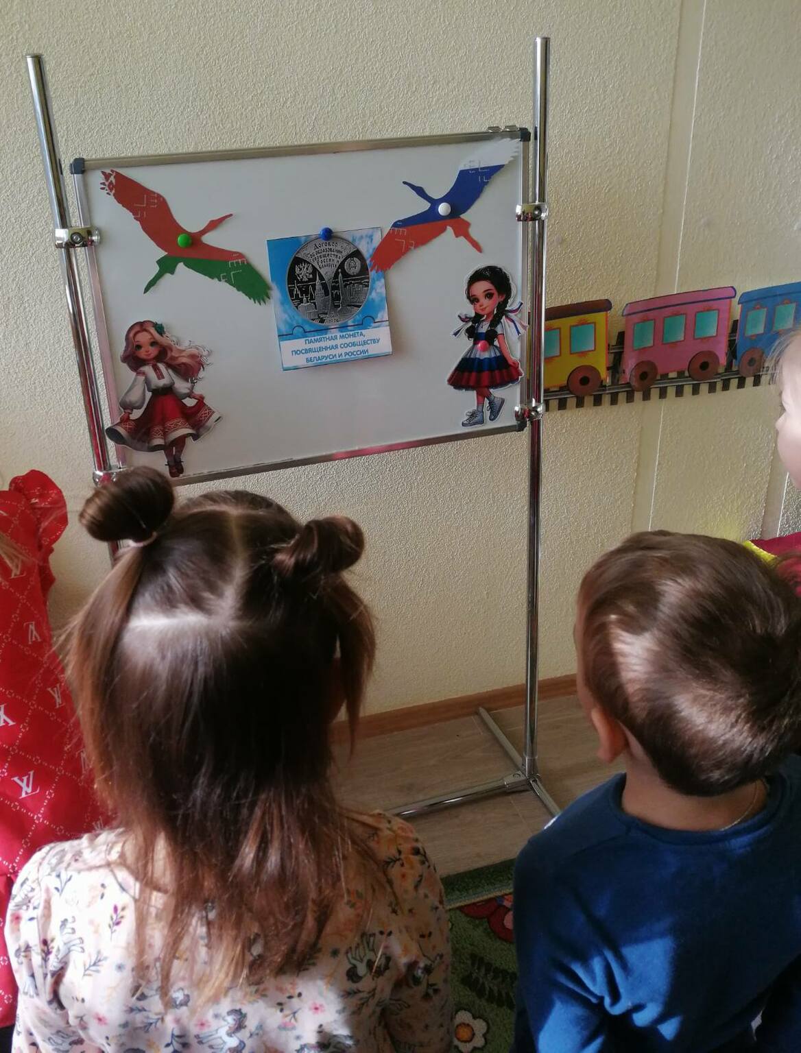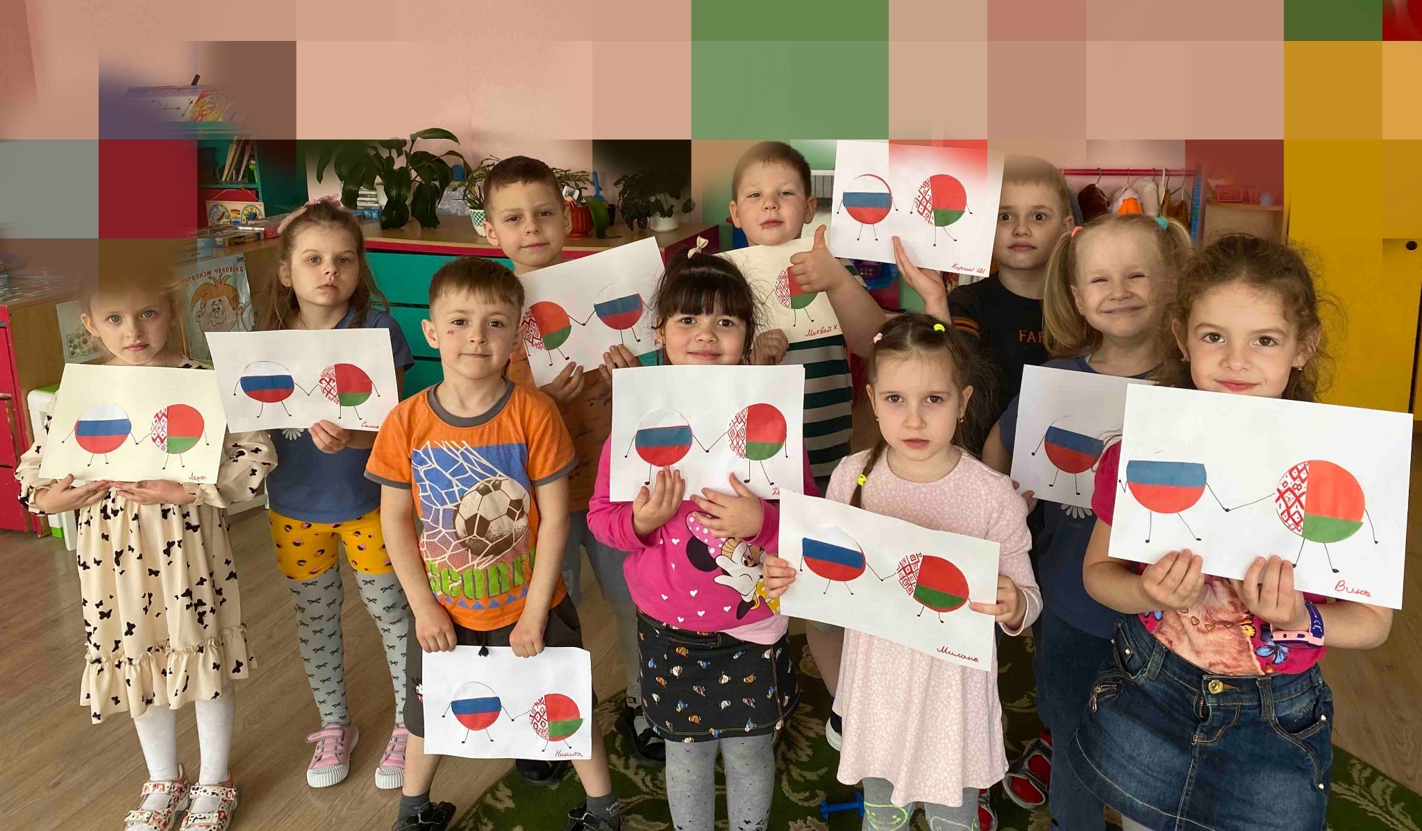 В средних и старших группах прошли тематические беседы «Вместе мы сила», «Мы -белорусы умеем дружить», «Дружественная страна Россия», «Две сестры -Беларусь и Россия», дети уточнили свои знания и представления о двух странах, их обычаях, традициях и различиях в познавательно-практической деятельности: «Найди на глобусе страну?»,рассмотрели символы дружбы, кукол в народных костюмах, обследовали и сравнивали матрешек.