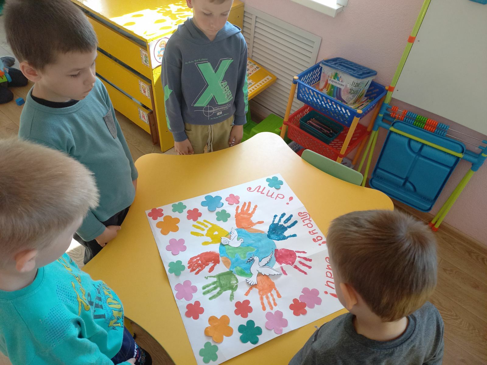 Ребята с интересом прослушали песни и танцы народов Беларуси и России, читали белорусские и русские сказки, стихи, пословицы и поговорки, играли в дидактические и подвижные народные игры. В изобразительной деятельности конструировали «Голубя мира».