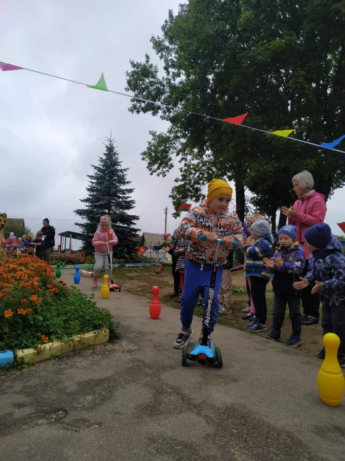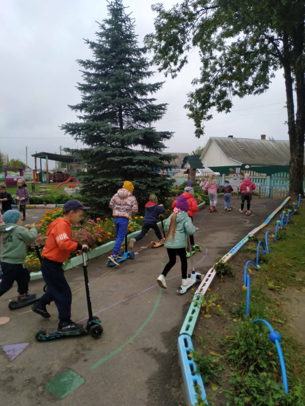 А потом среди воспитанников старших групп прошел заезд на самокатах