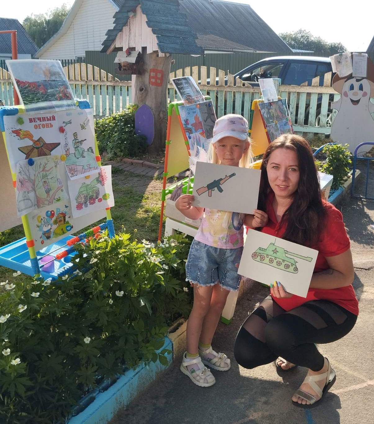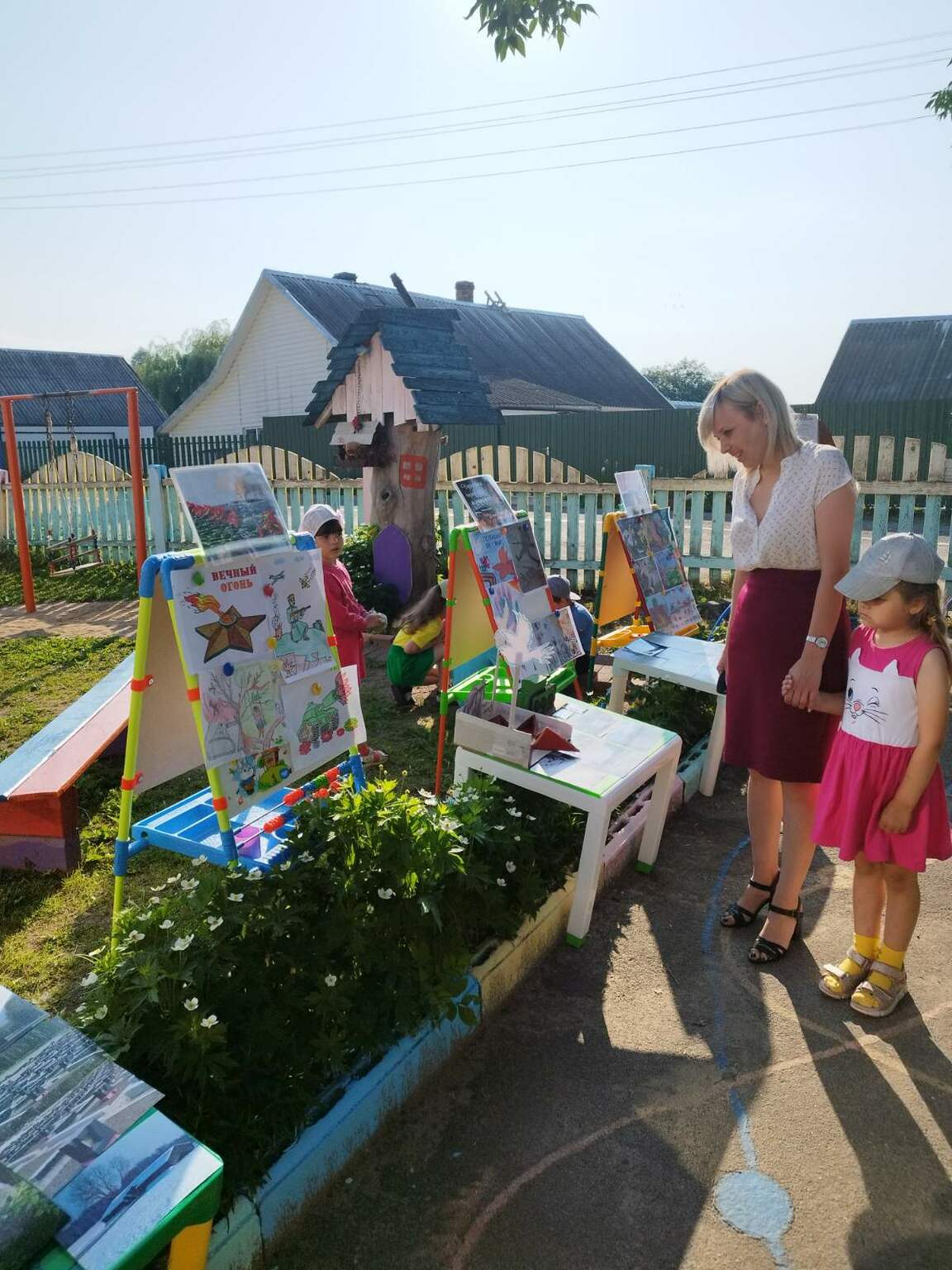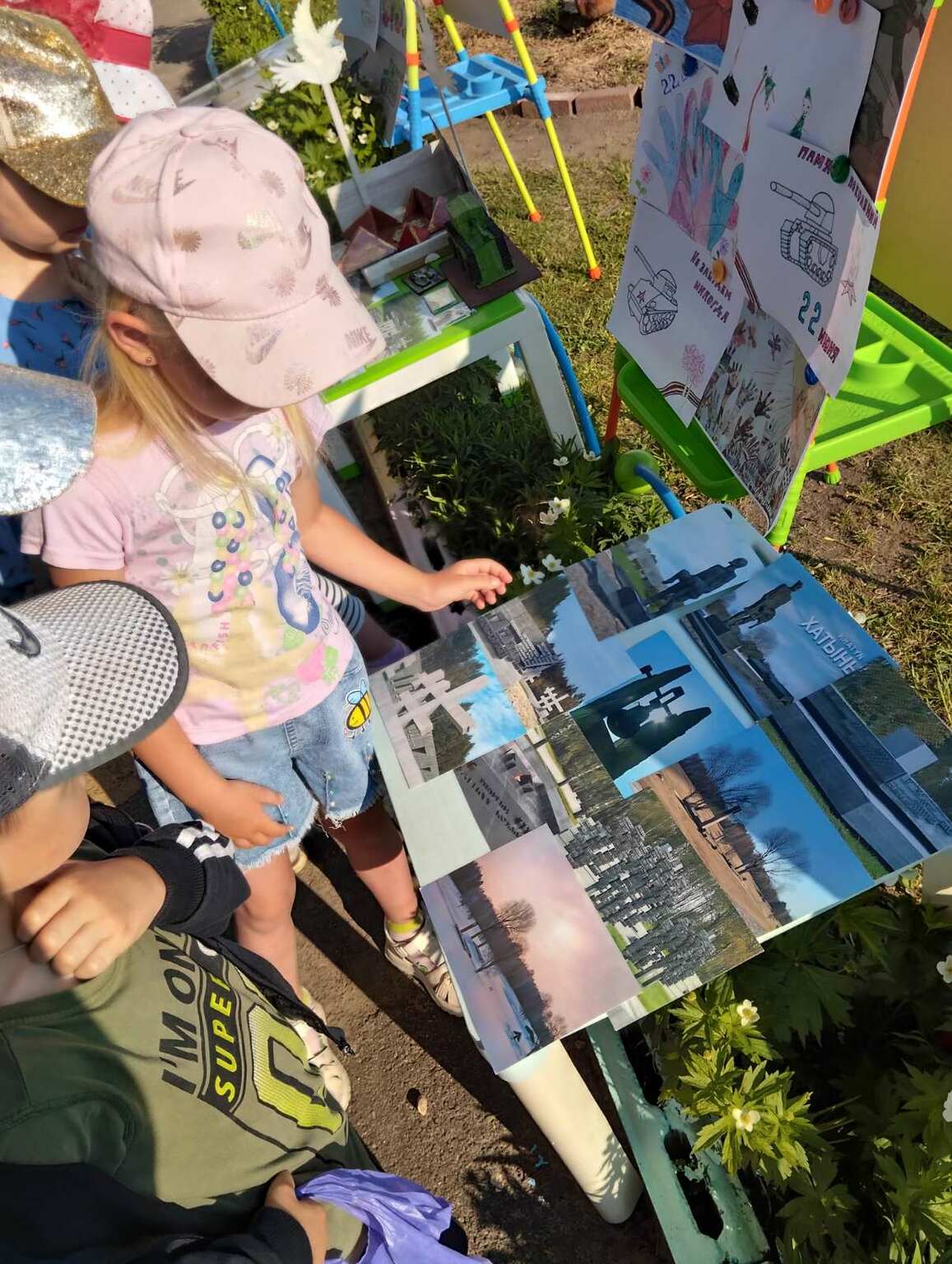 Не остались в стороне и воспитанники 1-й младшей группы: воспитатель дошкольного образования организовал работу творческой мастерской «Светит в небе солнышко». Ребята из средних групп из бумаги сконструировали «Свечу памяти». На прогулке были организованы подвижные игры «Самолёты» и «Переправа».