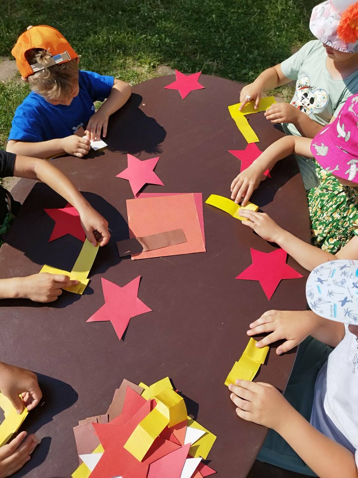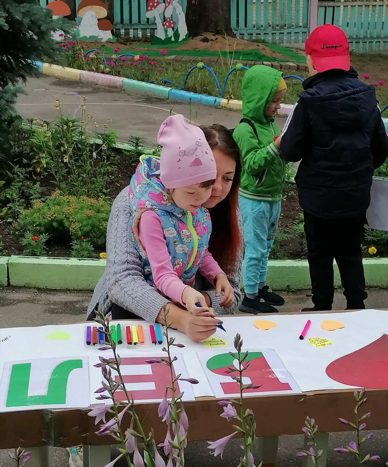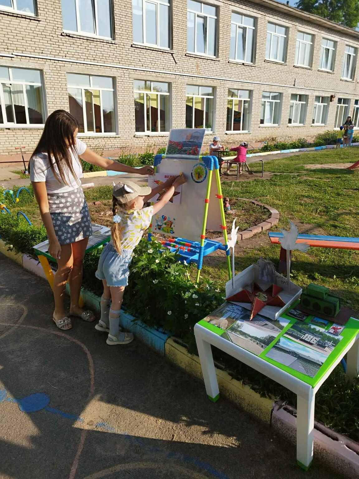 Не остались в стороне и воспитанники 1-й младшей группы: воспитатель дошкольного образования организовал работу творческой мастерской «Светит в небе солнышко». Ребята из средних групп из бумаги сконструировали «Свечу памяти». На прогулке были организованы подвижные игры «Самолёты» и «Переправа».