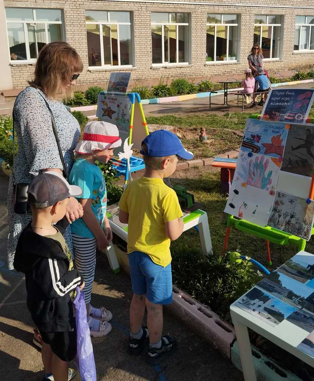 Утро началось с посещения выставки фотографий «День памяти и скорби» и рисунков «Война глазами детей», в которой приняли участие педагоги совместно с родителями и воспитанниками средних и старших групп.