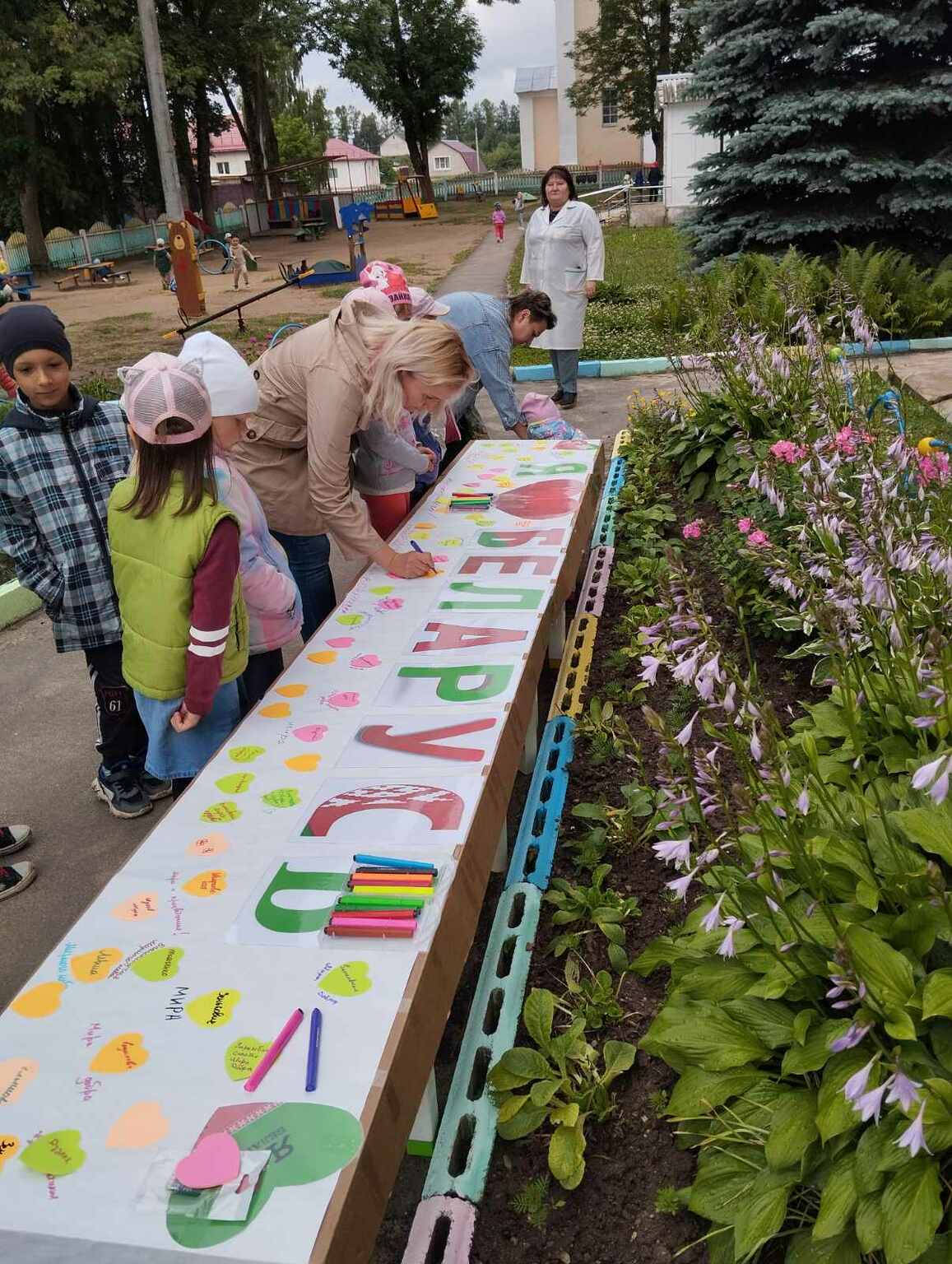 Утро началось с флешмоба «Я люблю Беларусь!», в котором приняли активное участие наши педагоги, воспитанники и их родители. Никто не остался в стороне и с огромным удовольствием на огромном плакате оставили частичку своего сердца со своими пожеланиями для своей любимой страны.